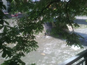 Ieri a Trento, lungo “la Fersenaâ€. In italiano sarebbe “il Fersinaâ€, il torrente Fersina, ma io preferisco utilizzare l’espressione dialettale, locale: al femminile. Quindi La Fersena. Quella che scende dall’unica valle tedesca del Trentino, la Mochenthal, la Val dei Mocheni. Che poi sarebbe un fiume, se è vero quello che ci hanno sempre insegnato a scuola … infatti la Fersena ha sempre acqua, non l’ho mai vista in secca. Allora è deciso. E’ un fiume. E ieri, in quel fiume … mentre passeggiavo quasi “solo e pensoso†lungo i suoi bei viali, all’ombra dei suoi ippocastani, spingendo il passeggino nel quale dormiva la piccola Sara, ecco che ti vedo un “pescatore urbanoâ€. Detto fatto: una foto al volo, con il vecchio telefonino.