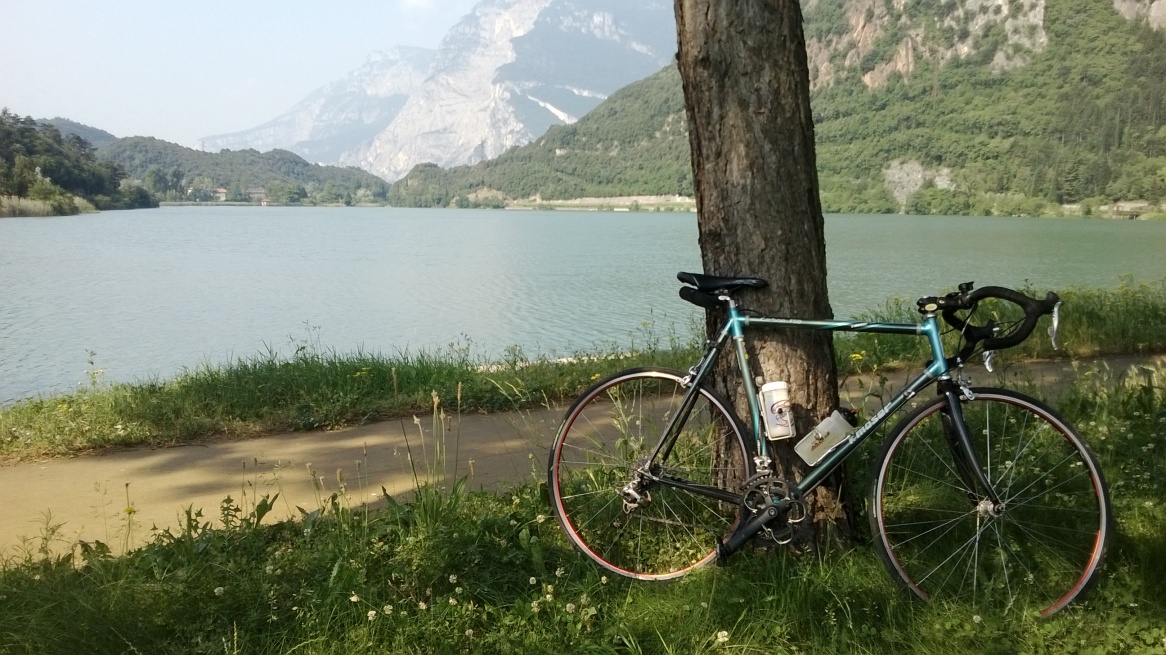 Ma torniamo a noi. ….e allora Maria Teresa mi porta a Cadine in macchina. Lo so, pochi post fa ve l’avevo già raccontata questa gita. Ma questa volta l’ho fatta con la bici da corsa. Ah, bè … allora, direte voi …. è tutt’altra cosa … Ma diciamo la verità , perché ci sono ricascato? Per pubblicare altre due foto. Tutto qui. E poi, qualche ulteriore dettaglio. Ad esempio, l’acqua? Dove fare il primo rifornimento? Dentro il paese di Vezzano. Indi, nessuna nuova sino a Sarche. Qui invece di risalire per 300 metri la strada per Madonna di Campiglio poi prendere a sinistra la ciclabile, potete girare a sinistra per Ponte Oliveti- Pergolese- Lago di Cavedine. Sosta con caffè al centro velico di Andrea Danielli, e poi via, verso sud (2 km in pianura, 1,5 in salitella) fino ad incontrare la SP 214. Risalite sino a Drena, indi, attenzione! Buone gambe o mtb o tutt’e due: verso destra si diparte una stadicciuola montana verso Braila per poi scendere a Massone-Arco. Questo tratto è di 6 km. Salite e discese molto ripide (quindi gambe e freni buoni), ma ne vale la pena!
