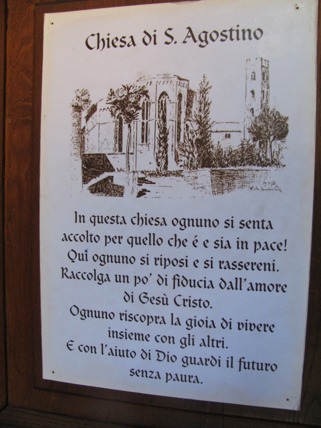 La Chiesa di S. Agostino ci accoglie con un messaggio veramente accogliente: “Ognuno si senta accolto per quello che è” …