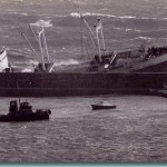 9 aprile 1970, Genova. Tempesta con naufragio. Il cargo London Valour era alla fonda, posizionato circa 1300 metri a sud della testata di levante della diga foranea Duca di Galliera del porto (accesso est). Io ero arrivato sulla passeggiata a mare, a 200 metri dalla nave, a bordo della mia Vespa Rally 180, che poco dopo avrei fatto fatica a mantenere nella in posizione eretta a causa del forte vento. Il Comandante aveva ordinato lo smontaggio dei propulsori poiché dovevano essere revisionati integralmente una volta entrati in bacino con l’ausilio dei rimorchiatori che erano attesi da lì a poco. Improvvisamente sulla costa si abbatté una libecciata di enorme violenza (prevista dai bollettini meteo, 60 nodi, circa 110 kmh!); l’ancora della nave cominciò ad arare ed essa andò ad incagliarsi sugli scogli della barriera. A causa dei fortissimi venti e di onde sino a 4 metri, durante le operazioni di soccorso morirono molti membri dell’equipaggio, compreso il comandante. Le successive indagini appurarono le sue gravi responsabilità , in quanto egli non si avvide in tempo del variare delle condizioni meteorologiche, né avvisò l’equipaggio del fatto che l’avviamento dei motori della nave, per motivi tecnici, avrebbe richiesto un tempo decisamente superiore al normale. Nell’unica foto allegata, vedete la nave ormai arenata contro l’esterno della stessa diga al cui interno, invece, è passato il traghetto “Fantastic†di cui qui di seguito ed alle altre foto.