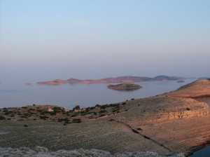 Croazia. Parco Nazionale delle Isole Incoronate, Kornati. Andiamo lì da anni per le vacanze estive, in una casetta che una volta era stata il punto di appoggio e di ricovero per i pescatori, nell’occasione della raccolta delle olive o quando si trattava di tosare le pecore che vivono praticamente allo stato brado su quelle isole.  L’acqua, nel pozzo. Il pesce fresco, dalle nasse. La frutta (fichi, more, prugne), sugli alberi. Energia elettrica e doccia calda, dal sole. La malvasia, in casa, cioè … prendiamo in affitto “casa con vinoâ€. Quanto ne consumiamo? Be’ quasi tutte le sere si fa festa con gli amici delle casette vicine (nove in tutto), ora da uno ora dall’altro, chi ci mette il vino, chi la frutta, chi il pesce, chi fa il fuoco, siamo sempre oltre dieci persone. Ed ecco che tre litri al giorno sono appena sufficienti. A terra si chiedono “Quanto si fermano gli italiani?†Risposta: “20-40-60 litri†il che significa, a seconda dei casi, una, due tre settimane.