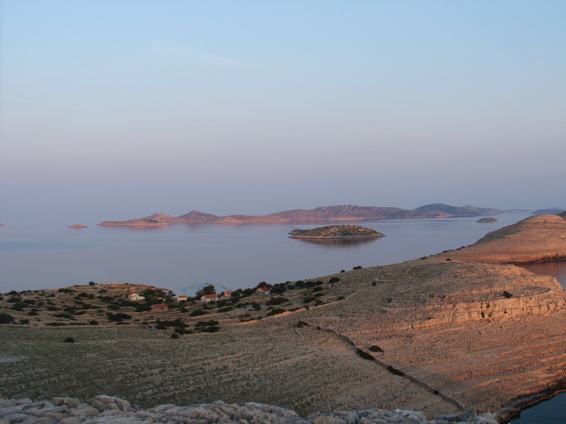 Salpo. Appena fuori dal piccolo arcipelago che protegge il porto, iniziano le onde: le ho di prua, come il vento.  La barca salta, si impenna, devo rallentare. Rallenta rallenta, il tempo passa e le tenebre scendono. Sulle “nostre†Kornati non v’è alcun faro. Non abbiamo carta nautica, gps e radio. Io e Maria Teresa abbiamo indossato le tute da velisti e stiamo al caldo (almeno questo!). Con l’ultima luce, cerco di memorizzare il varco attraverso il quale dovrei entrare nell’arcipelago. Tuttavia, se non fosse per Maria Teresa, non l’avrei centrato. Alla fine, grazie ai suoi suggerimenti, lascio il mare aperto ed entro fra le nostre isolette. A questo punto tutto è più facile nonostante il buio quasi assoluto: infatti le onde sono cessate e noi conosciamo e riconosciamo ogni scoglio, ogni insenatura … fino a quando arriviamo alla nostra: evviva! Sul moletto tutti i nostri amici, i quali, avremmo appreso dopo, da un paio d’ore erano in fremente e preoccupato contatto telefonico con chi ci aveva affidato la barca. Per aiutarci, gli amici ci illuminano con le torce elettriche con il risultato di abbagliarci. Nema problema, nessun problema … ormai siamo a casa. Entro nel minuscolo porticciolo, salto a terra, mi inginocchio e bacio il molo. Tutto è bene ciò che finisce bene.