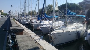 Ed eccomi a pedalare fra le pinete romagnole, senza disdegnare una visita alle barche a vela ormeggiate nel Porto Canale di Cervia e una pedalata di 50 km per ri-visitare S. Apollinare in Classe.