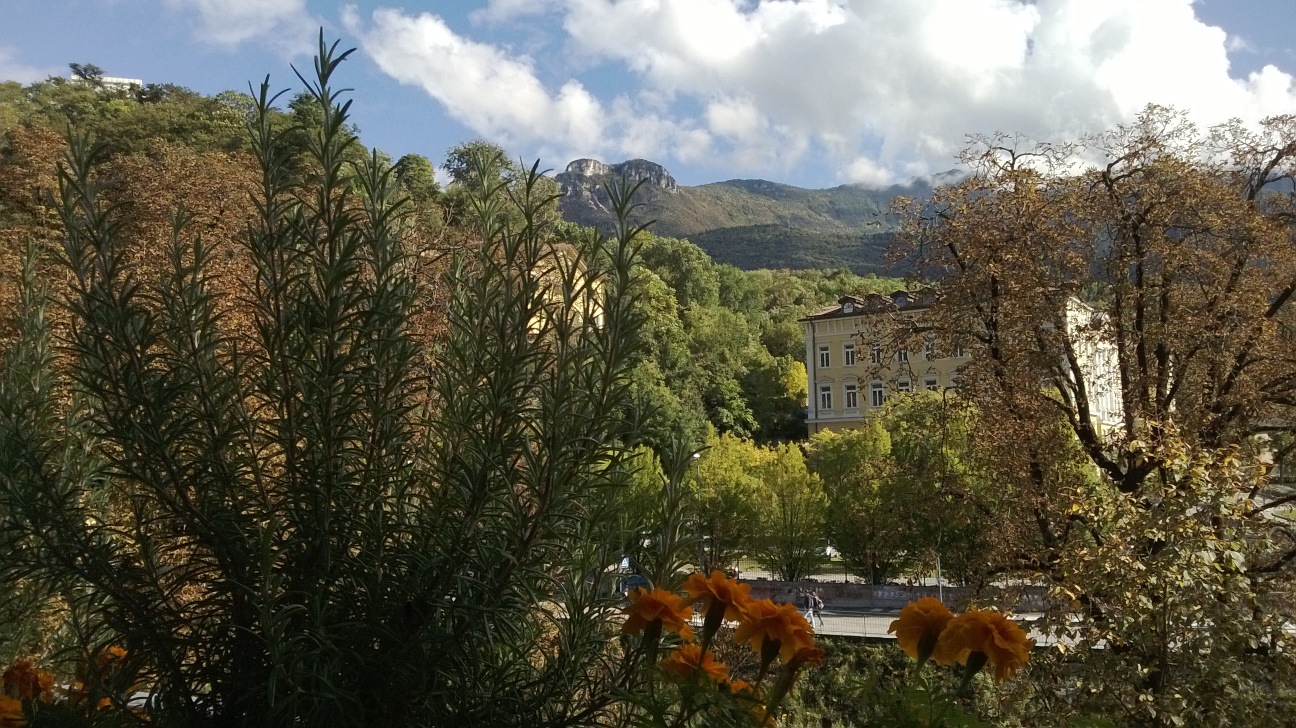 Mi fermo e scatto una foto al Bondone, la montagna di Trento: “Quando il Bondon g’ha ‘l capel, o che fa brutto o che fa belâ€. E’ vero, E oggi non si smentisce: “fa†belloâ€. Ai lati della pita, tanti bei fiori gialli, una specie di grosse margherite. Gli addetti alla manutenzione, preannunziati da un segnale di “Sfalcio erbaâ€, la spazzano (sic!), ne curano le aiuole a contorno: piste ciclabili come giardini all’italiana! Sulla pista, pochi ciclisti. Forse troppo freddo per i pensionati. Gli altri … al lavoro. D’altra parte questa notte ha nevicato al Passo del Brennero e al Passo del Tonale. La neve si avvicina!