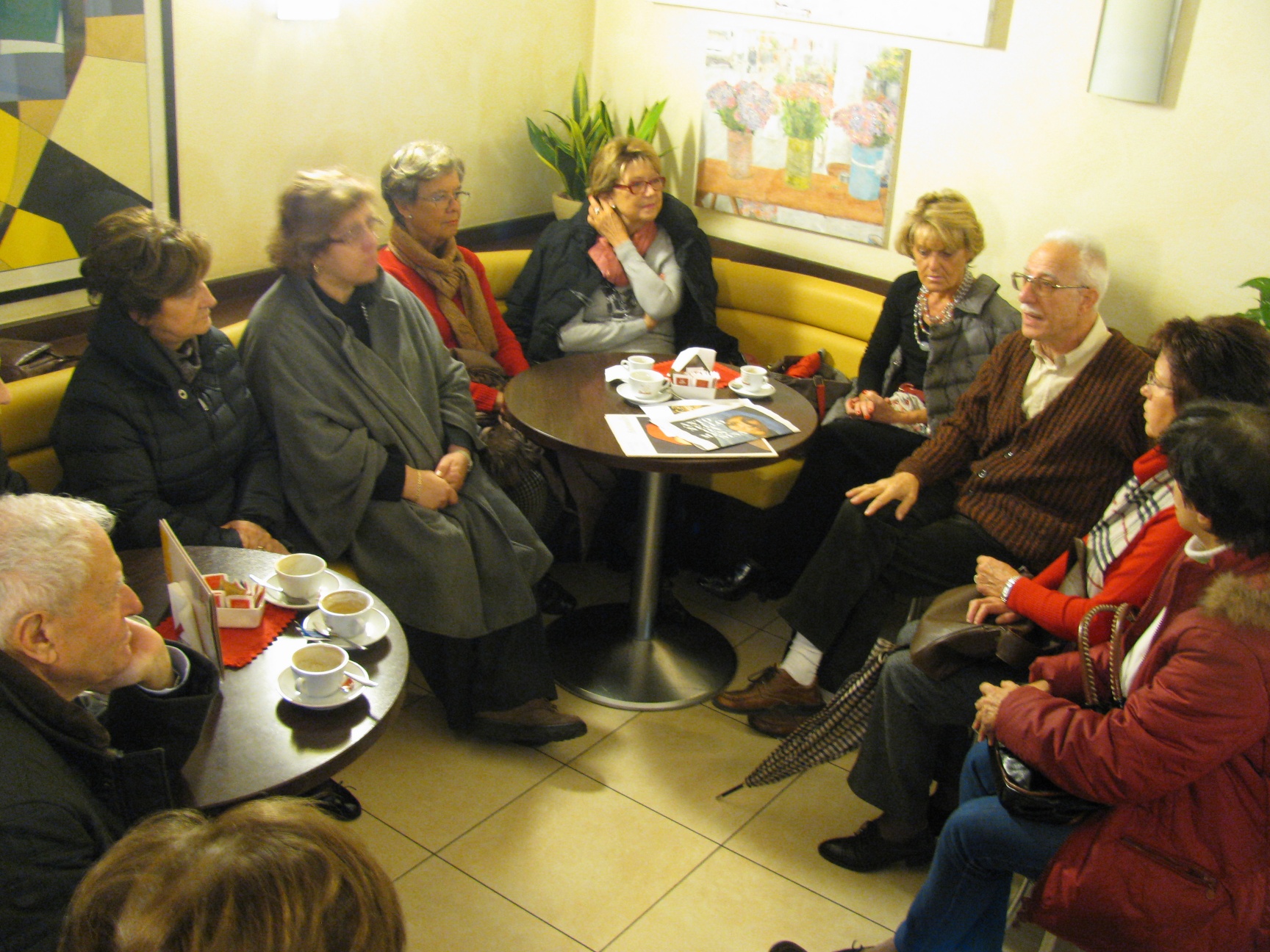 A Rovereto, eravamo “quattro†amici al bar (“del Teatroâ€) … anzi ben di più … “quindici†(!) ma non entravamo tutti nella foto. Noi, amici Accademici delle Muse, dell’omonimo circolo culturale privato di Trento, in missione. Guidati dalla prolusione del nostro Umberto Sancarlo, che ci ha “preparatì†alla visita alla mostra delle opere di Antonello da Messina, lui, professore di Storia dell’Arte, lui … “siculo†non di Messina ma di Palermo (e vabbè …).