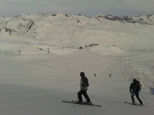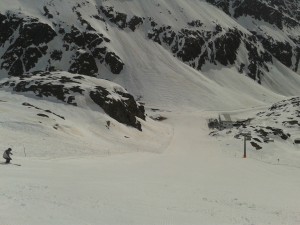.Piste molto larghe, ben battute dai gatti e, oggi, dal vento! Sul “pianoro” a 3.000 metri, piste facili, adatte ad ogni sciatore. Ma non ci si annoia certo: infatti ve ne sono anche di “rosse”, intervallate e deviate con muri “neri”: tutte però molto ben battute, larghissime, per cui in ogni caso facilmente sciabili. Frequenti i posti di ristoro.