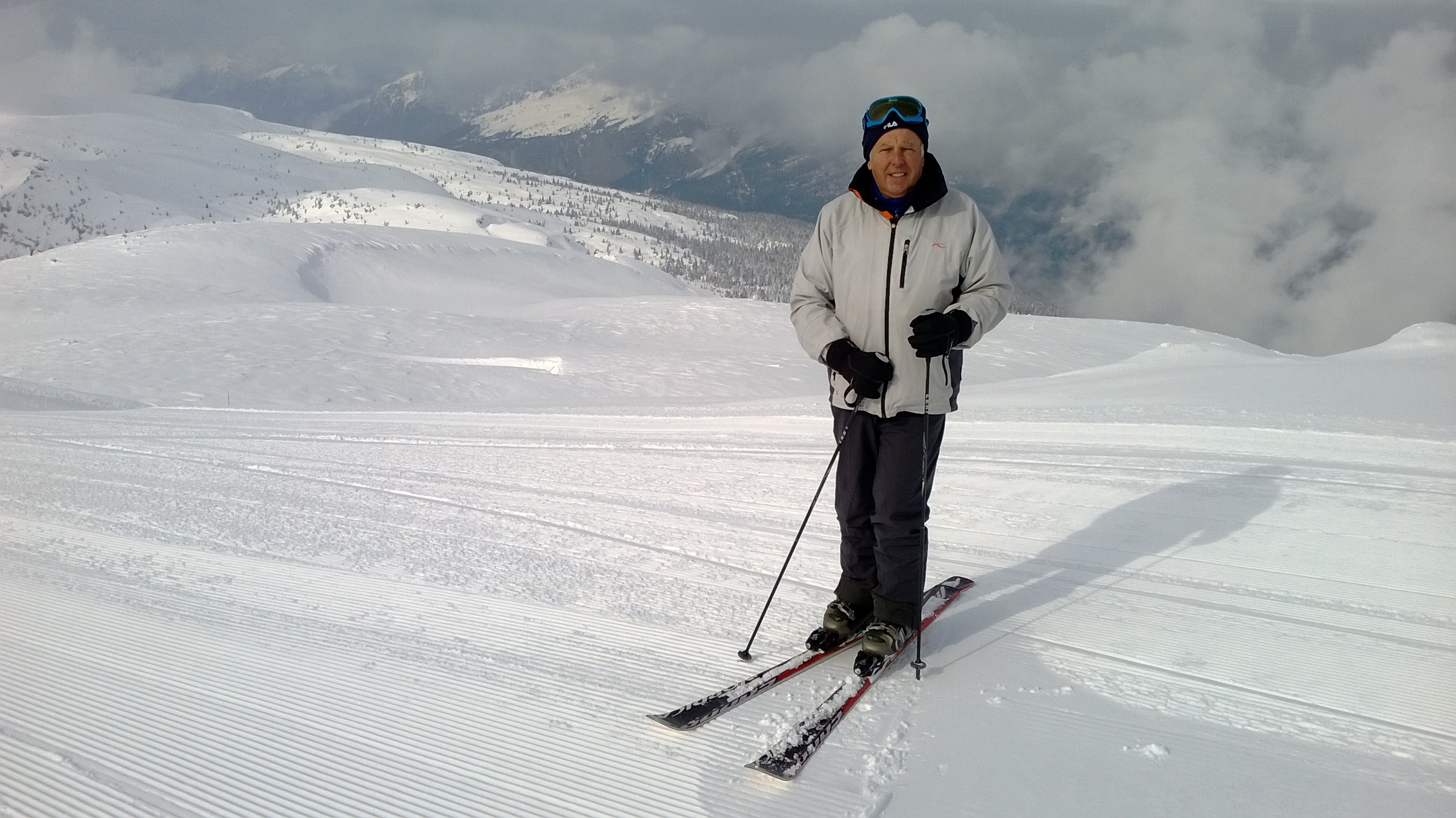 Già , aveva fatto caldo, pareva finita la stagione e invece … temperatura di nuovo ok, nevicate notturne e la mattina, neve come il velluto! Saliamo presto da Trento, io e Claudio, “veci†pensionati. Alle 08,30 siamo i primi straza piste (straccia piste), cioè quelli che segnano per primi il manto ben battuto delle piste. Faccio mettere in posa l’amico Claudio per una foto ricordo.