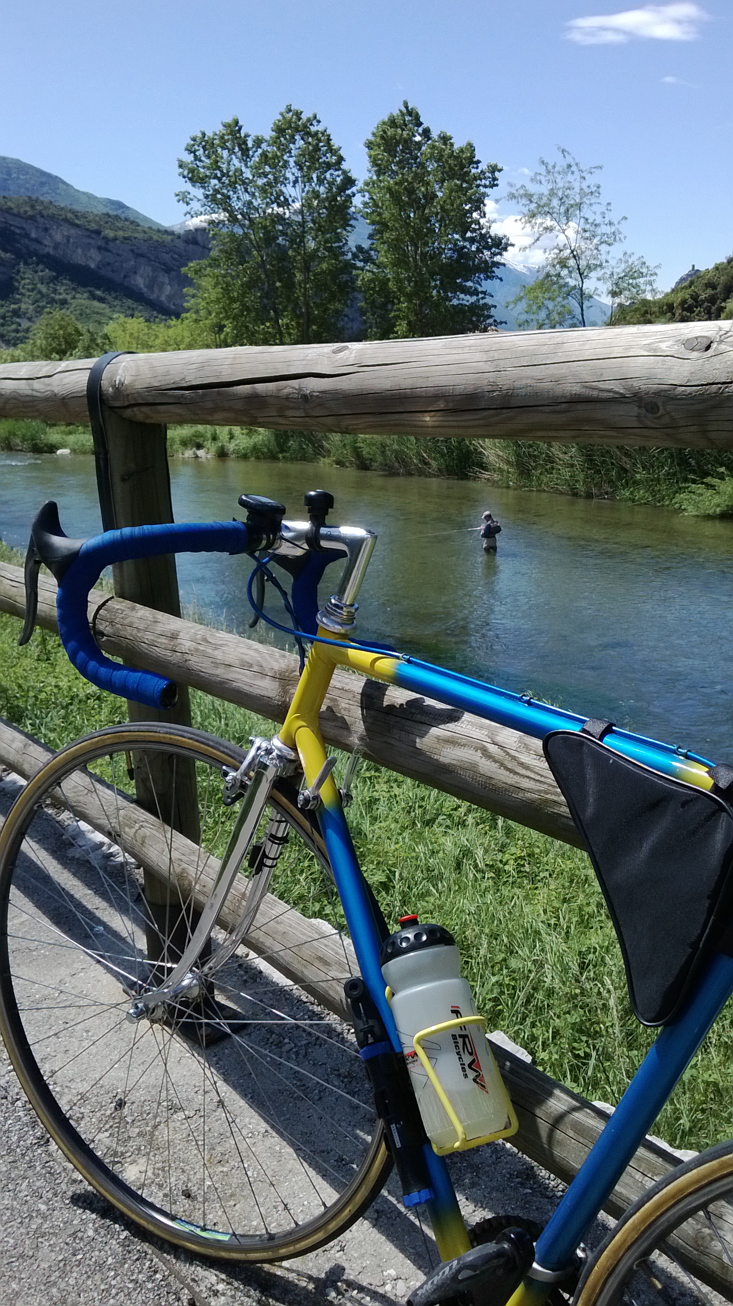Si segue la ciclabile lungo il Sarca (con un pescatore dentro).
