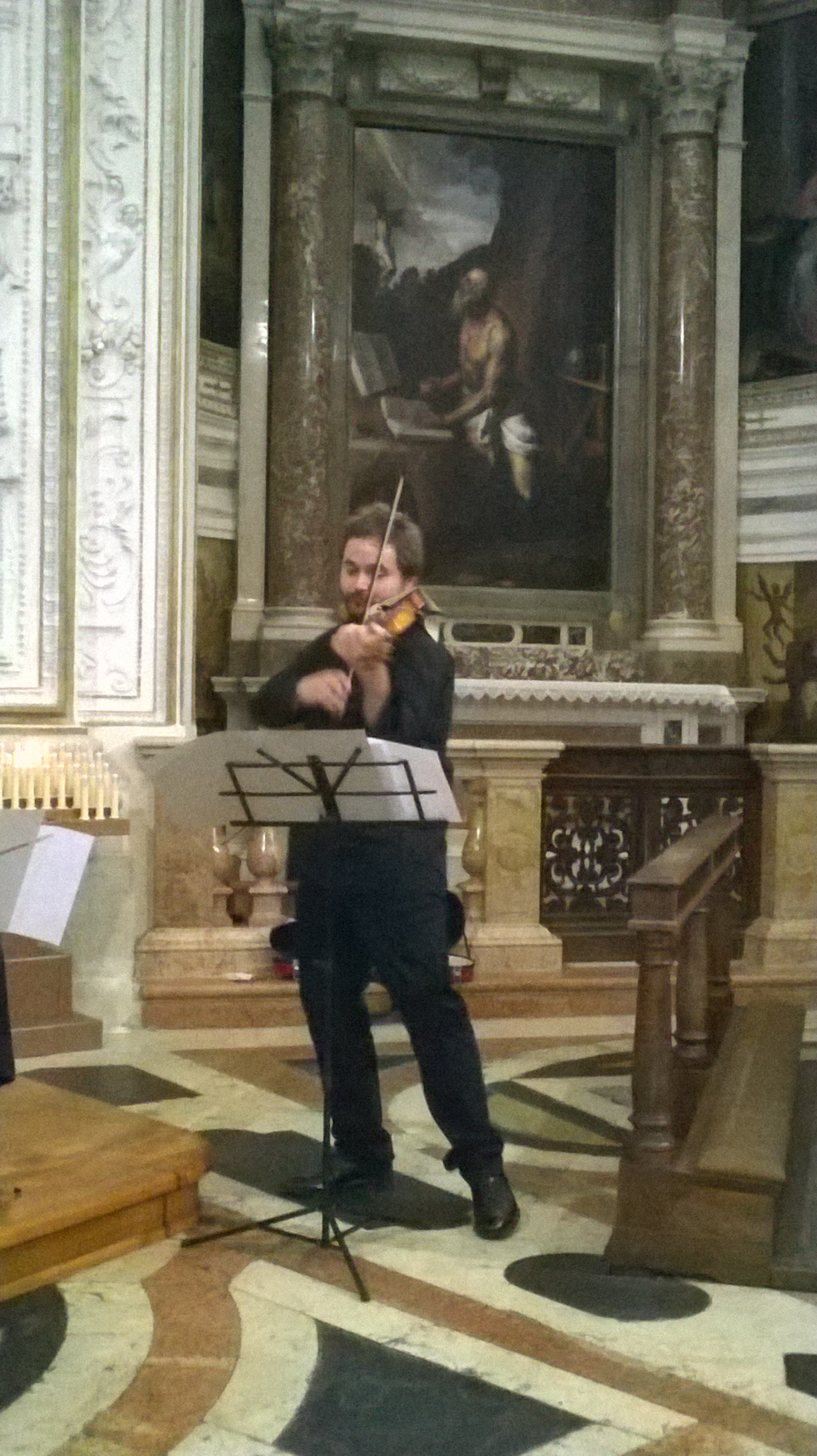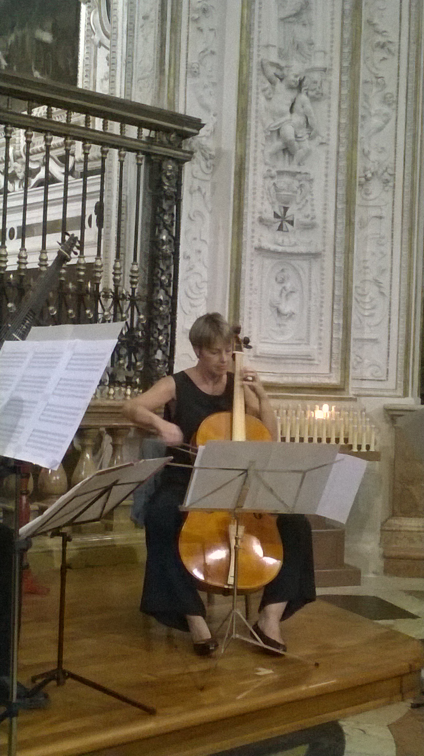 Avvenimento unico. All’interno, musica da “pelle d’ocaâ€. All’esterno si scatena un temporale estivo.  All’interno il folto e selezionatissimo pubblico scatena una tempesta di appalusi e la richiesta di  svariati bis. Io mi trovo in imbarazzo a evidenziare la particolarità dell’esecuzione, in quanto non sono né un musicofilo né un critico musicale, ma solo uno che “ama la musicaâ€. Aggiungo soltanto che la commozione è stata fortissima. L’ideale però – lo confesso – sarebbe stato poter assistere al concerto da sdraiati, per potere ammirare le splendide volte e le affascinanti volute barocche della chiesa.