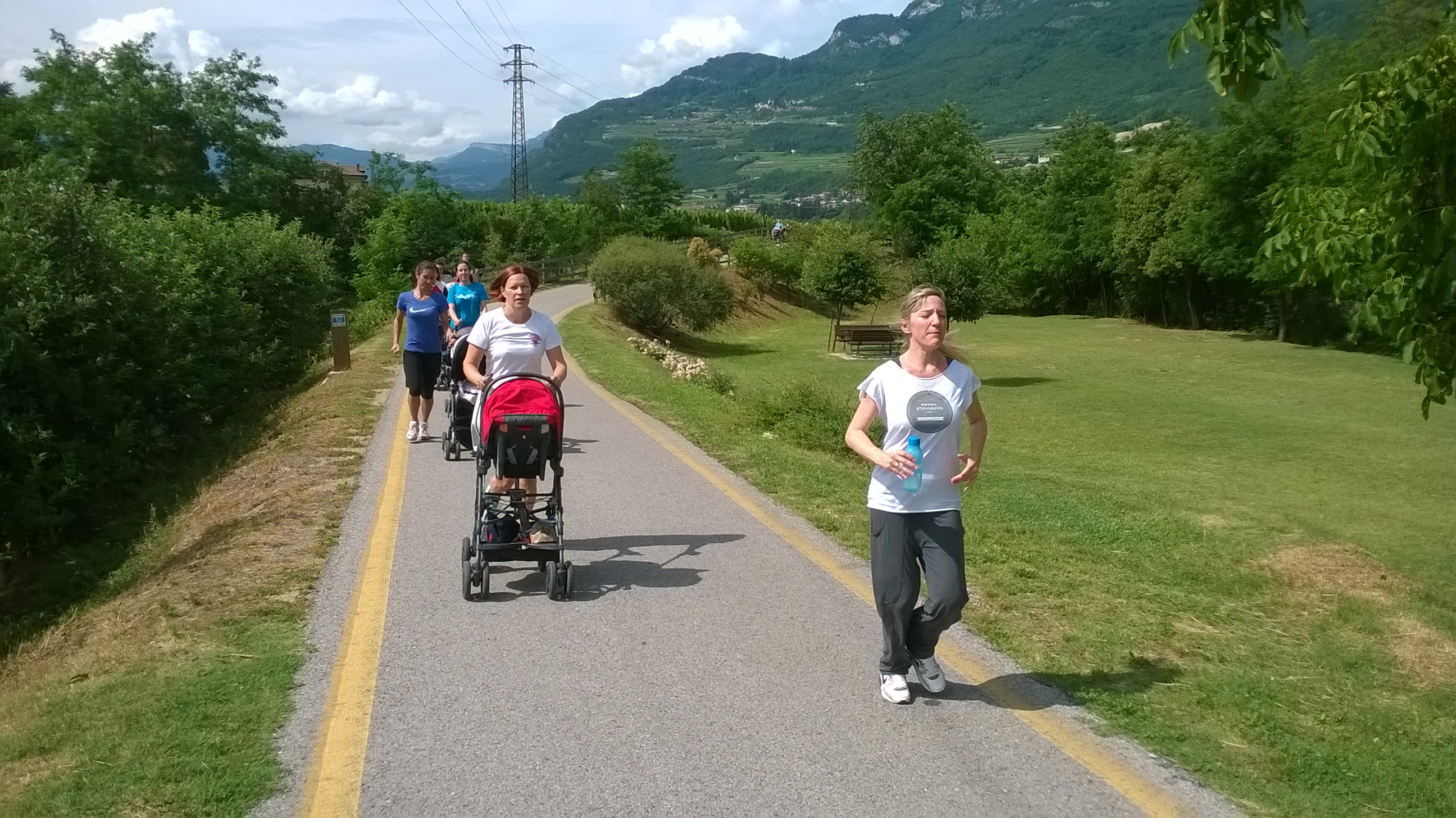 Sorpasso Mori. Al traverso di Rovereto, sotto la guida di una istruttrice,  una fila di giovani mamme spingono, correndo, i loro carrozzini con tanto di “cuccioli†a bordo. L’istruttrice ogni tanto le fa fermare, fa fare loro esercizi respiratori, e poi, via, di nuovo di corsa. Un ciclista che le incrocia grida loro, sorridendo: “Che sono, le olimpiadi?†La scena è bellissima. Io cerco di fotografare l’intera teoria, ma la bicicletta mi impedisce i movimenti e così le mie foto non sono rappresentative dell’intero gruppo. Le avverto che sarebbero “finite†sul mio blog. Ne sono contente. Brave, giovani mamme! Brava, istruttrice! E dai, commentate questo post del nonno Riccardo!
