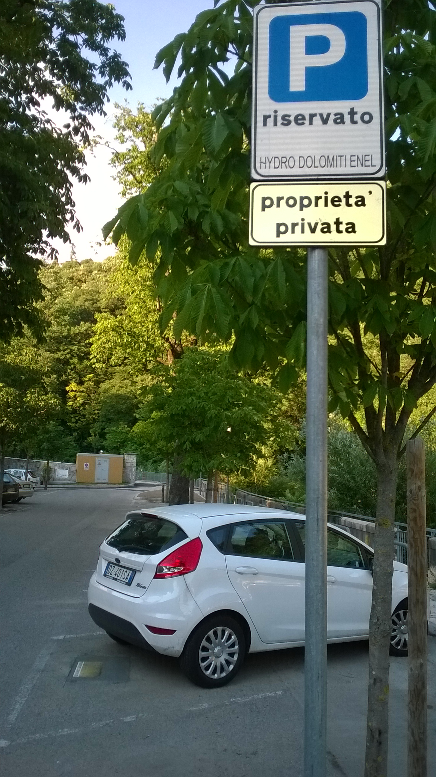 Sono un residente in Viale Trieste 13, Trento. Ho due auto, un box, un abbonamento con due targhe per gli stalli blu di superficie. Personalmente sono soddisfatto. Tuttavia ieri sera ho notato che i pochi stalli bianchi della sosta libera nella parte alta del viale, la cosiddetta “busaâ€, improvvisamente sono diventati, insieme al relativo tratto di strada, proprietà privata (sic) di tale “Hydro Dolomiti Enelâ€.