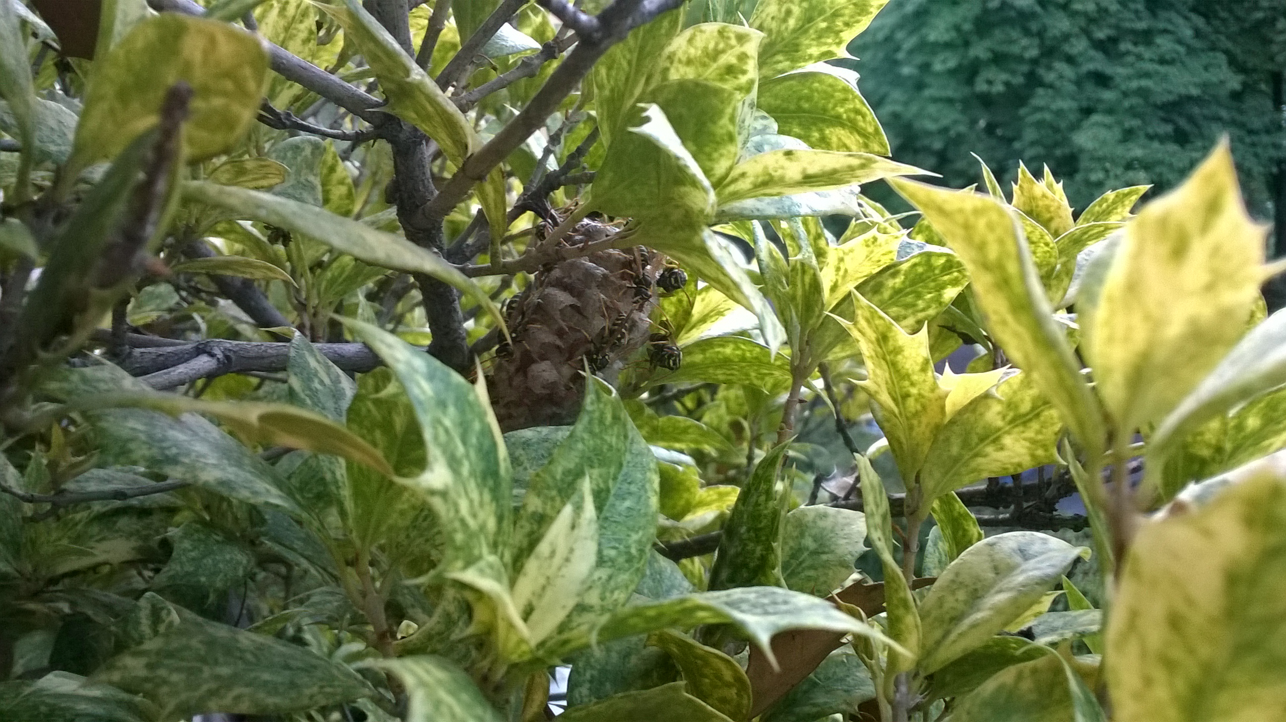 Per caso. Ripulendo le piante del mio balcone. L’ho visto. Un piccolo nido di vespe. Le vespe, pacifiche, al lavoro, incuranti della mia presenza. Non avrei voluto usare loro alcuna violenza ma come si fa … in questi giorni viene a casa mia la nipotina Sara … vivacissima, non potevo correre il rischio che fosse punta. Ed allora vado in internet ed imparo come fare ad eliminare il nido senza uccidere le vespe: prendo un cartone, ne faccio una torcia avvolgendolo all’estremità con la carta igienica, e con quello affumico le vespe che abbandonano il nido. A questo punto  lo elimino.