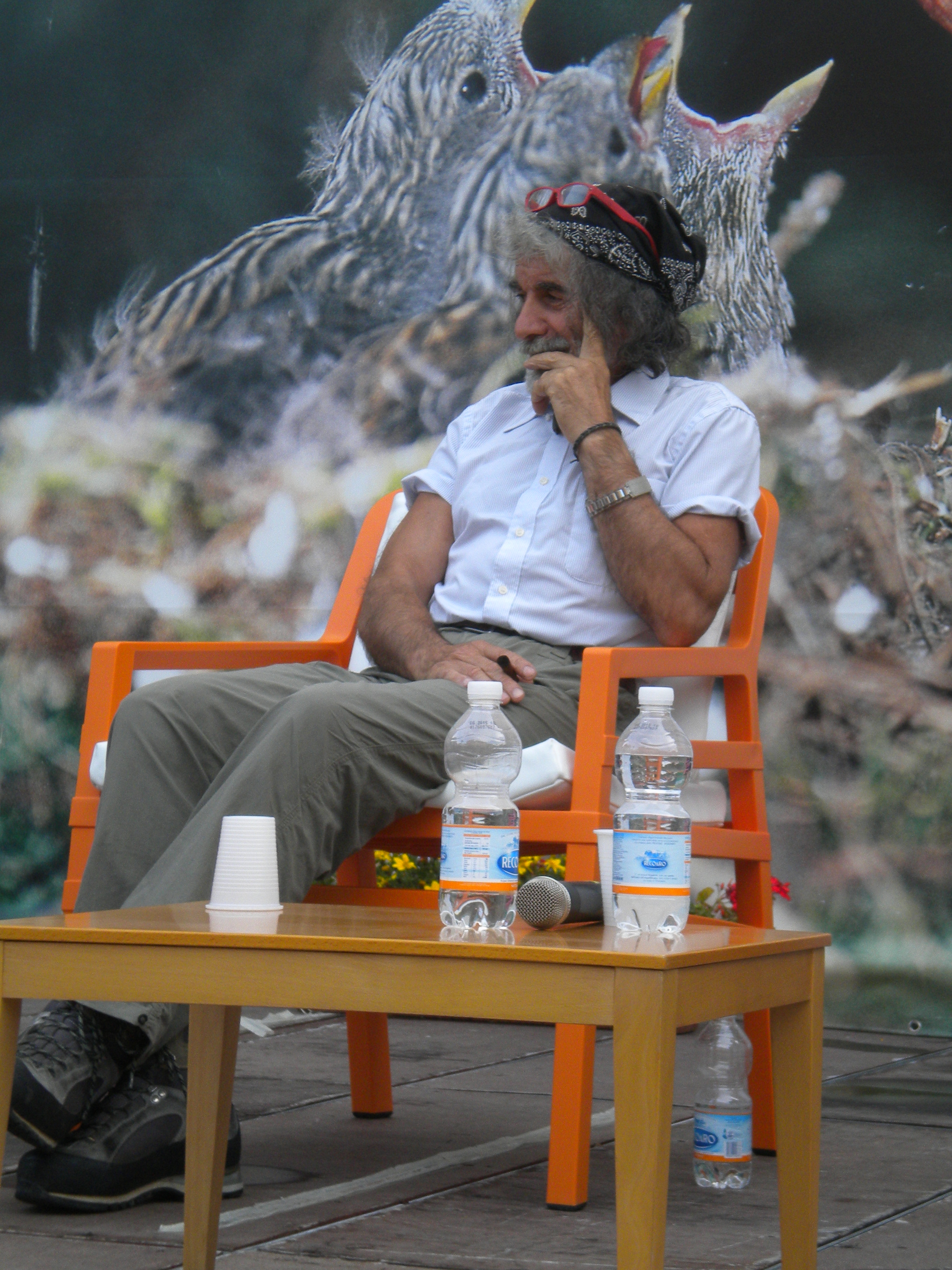 Innanzitutto Mauro ha ricordato e reso omaggio al compianto Mario Rigoni Stern che ricorda come un “larice di riferimentoâ€, quei larici che nella nebbia ti segnano la via del ritorno a casa, quel “larice†che soleva dirgli “Ma è mai possibile che tu non abbia anche una sola camicia da metterti?†“Ebbene, questa sera l’ho messa!†(applauso). Questo è l’incipit pubblico del Poeta Scrittore Arrampicatore Uomo di Montagna e (quindi) “Uomo di Verità â€: Uomo e Poeta di Verità , mi permetto di definirlo, prima che Scrittore (le maiuscole non sono utilizzate a caso). E così avete capito a quale Persona va la mia simpatia più immediata.