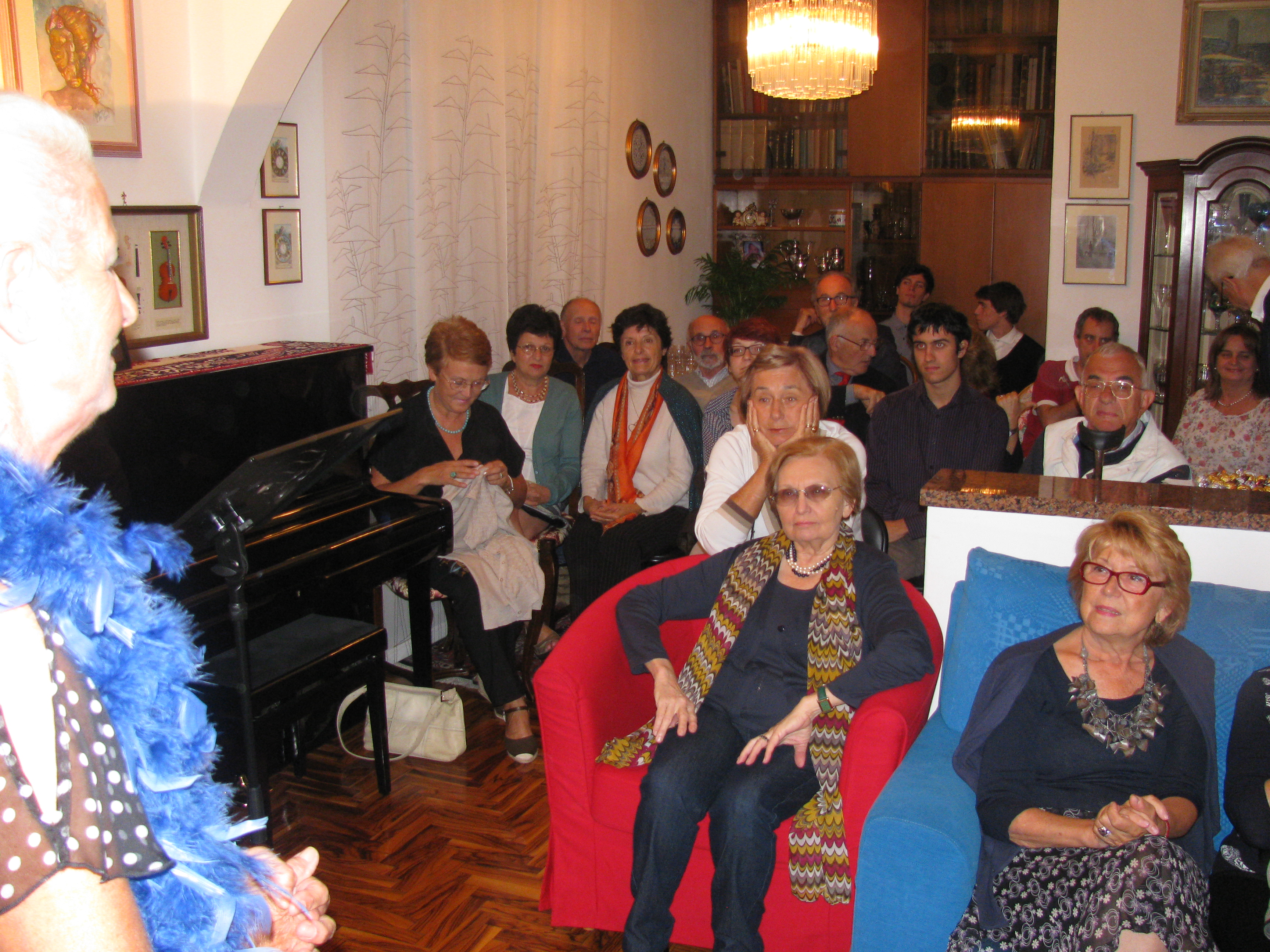 ACCADEMIA DELLE MUSE … ciak si gira … inizia il settimo anno! All’inizio eravamo in pochi, ora siamo quasi cento!. “Per fortuna†non sempre tutti presenti alle riunioni mensili che si tengono in … casa della Presidente Cristina! Non faccio i cognomi per via della privacy … Ieri sera, serata inaugurale della stagione 2014 – 2015 presenti una quarantacinquina di amici … Come faccio a contarle? Nessuna sedia vuota, nessuno in piedi, per cui, conoscendo il numero delle sedie il gioco è fatto. Io chi sono? Qualcuno, un po’ distratto, dice “il segretario†ma poi quando si rende conto che io sono nientepopodimeno che vice presidente, cerca di rimediare: “Intendevo .. Segretario Generale, come Kofi Annan …â€. Ah … vabbè, per questa volta lo perdono …