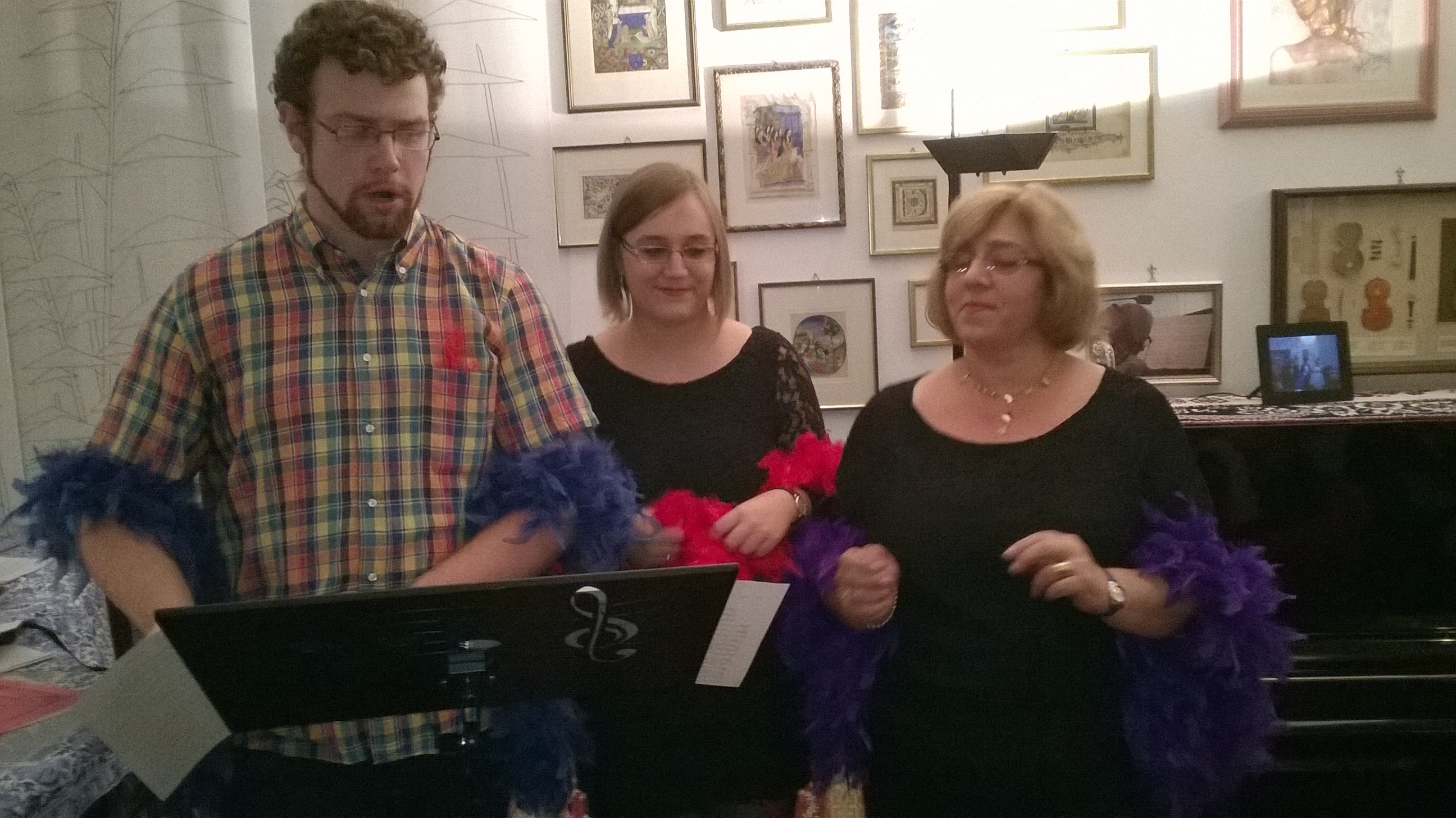 Cristina al pianoforte, Giovanna, Letizia e Stefano, canto e voci recitanti: la storia dell’operetta, intervallata appunto da brani delle singole composizioni. Un successo concluso dal coro di tutti noi “E’ scabroso le donne studiar†da “La vedova allegraâ€: standig ovation!
