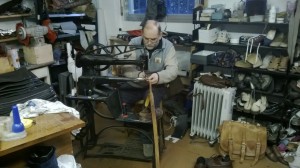 In particolare descrivevo il modo a dir poco “magico†con il quale, utilizzando stecche di metallo di un vecchio ombrello, si costruiva le parti di ricambio per riparare la sua vecchissima macchina da cucire da calzolaio, un macchina storica, direi, un pezzo da museo, but still going strong! Semplicemente stupefacente!