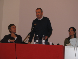 … Don Marcello Farina che presenta ed introduce il libro “Lo schiaffo di Don Milani†del Professor Pier Giorgio Reggio, Edizioni Il Margine, presente l’Autore, pedagogista e formatore, docente alla Cattolica di Milano, esperto in “educazione degli adultiâ€, membro del Consiglio di Amministrazione della Fondazione De Marchi che gestisce l’Università ospite.