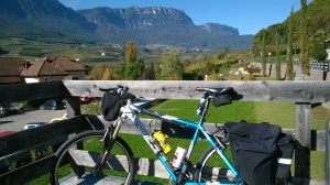 In auto fino ad Egna, dove incontriamo Otto che gestisce un chiosco di ottime mele locali. Ormai un amico, persona dai molteplici interessi culturali e sportivi, il figlio all’università di Berlino. Otto ci offre un bicchiere di succo di mela. Grazie Otto, ora il “dovere†ci chiama. 18 km fino a Bolzano, poi a sinistra la salita lungo il percorso dell’antica ferrovia.