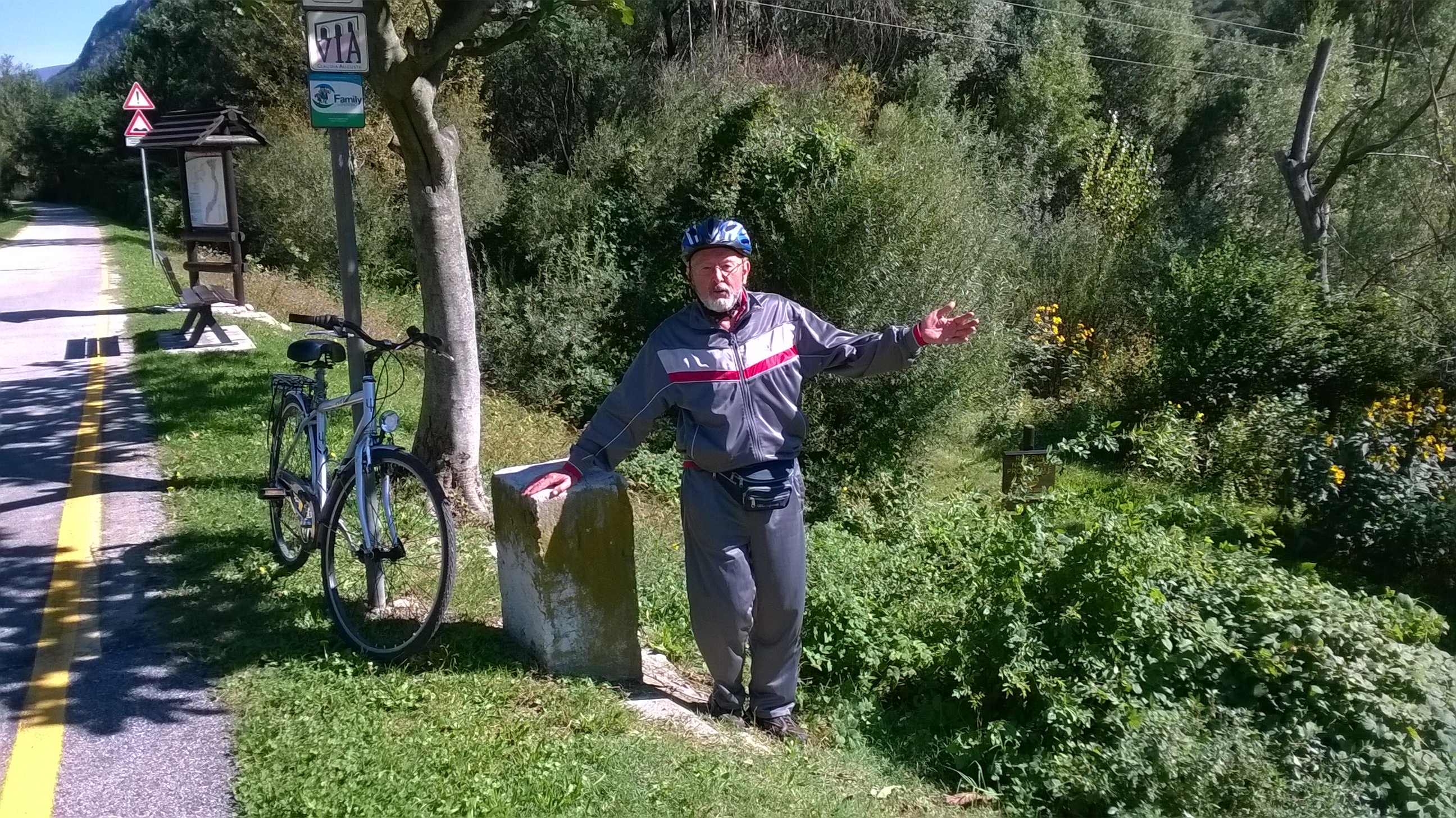 (Valle dell’Adige. Si noti la precauzione: Soncin Pedalator ha lasciato la  sua ciclo a nord del cippo di confine “sul qual la mano dritta va ponendo”)