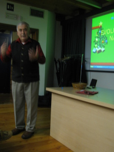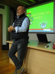 La sua conferenza è arricchita da 238 slides (ci tiene a sottolinearlo), E’ stata scritta 15 anni fa ed è stata rappresentata in Tirolo e in Usa in molte località: la Storia del Natale dai tempi dell’antica Roma ad oggi.