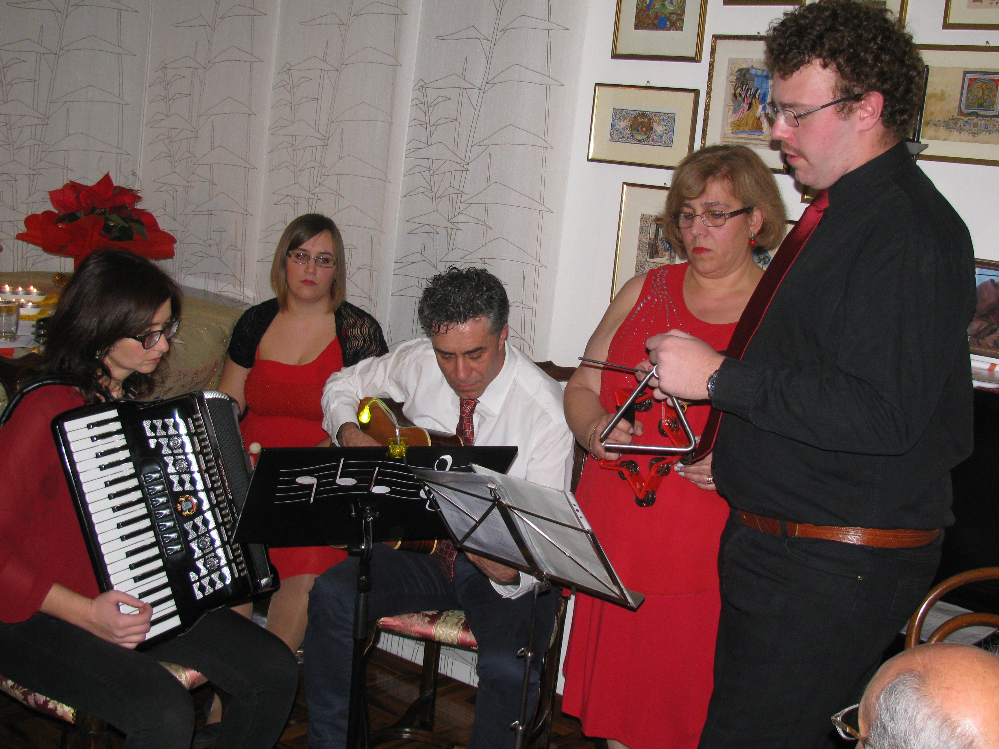 Prima parte: il gruppo musicale “Il gaio Settimino†dei composto da Letizia Grassi (soprano) , Giovanna Laudadio (mezzo soprano), Barbara Tognolli (voce), Sergio Runcher (basso) e Stefano Galletti (basso), accompagnati dal pianoforte di Cristina Endrizzi, dalla chitarra (e voce) di Patrik Coser dalla fisarmonica (e voce) di Barbara, hanno eseguito “Aspettando Natale†brani natalizi di Haendel, Gounod, Tosti, Adam, Bizet, Lennon/Ono, Berlin, oltre ai famosi “Adeste Fidelesâ€, “Spiritual Scendi Mosesâ€, “Gli angeli delle nostre campagneâ€, “Stille nacht†intervallati dalla partecipazione del Coro dell’Accademia munito dei campanellini per il gran finale di “Gingle Bellâ€! Standing ovation finale! Grazie, ragazzi!