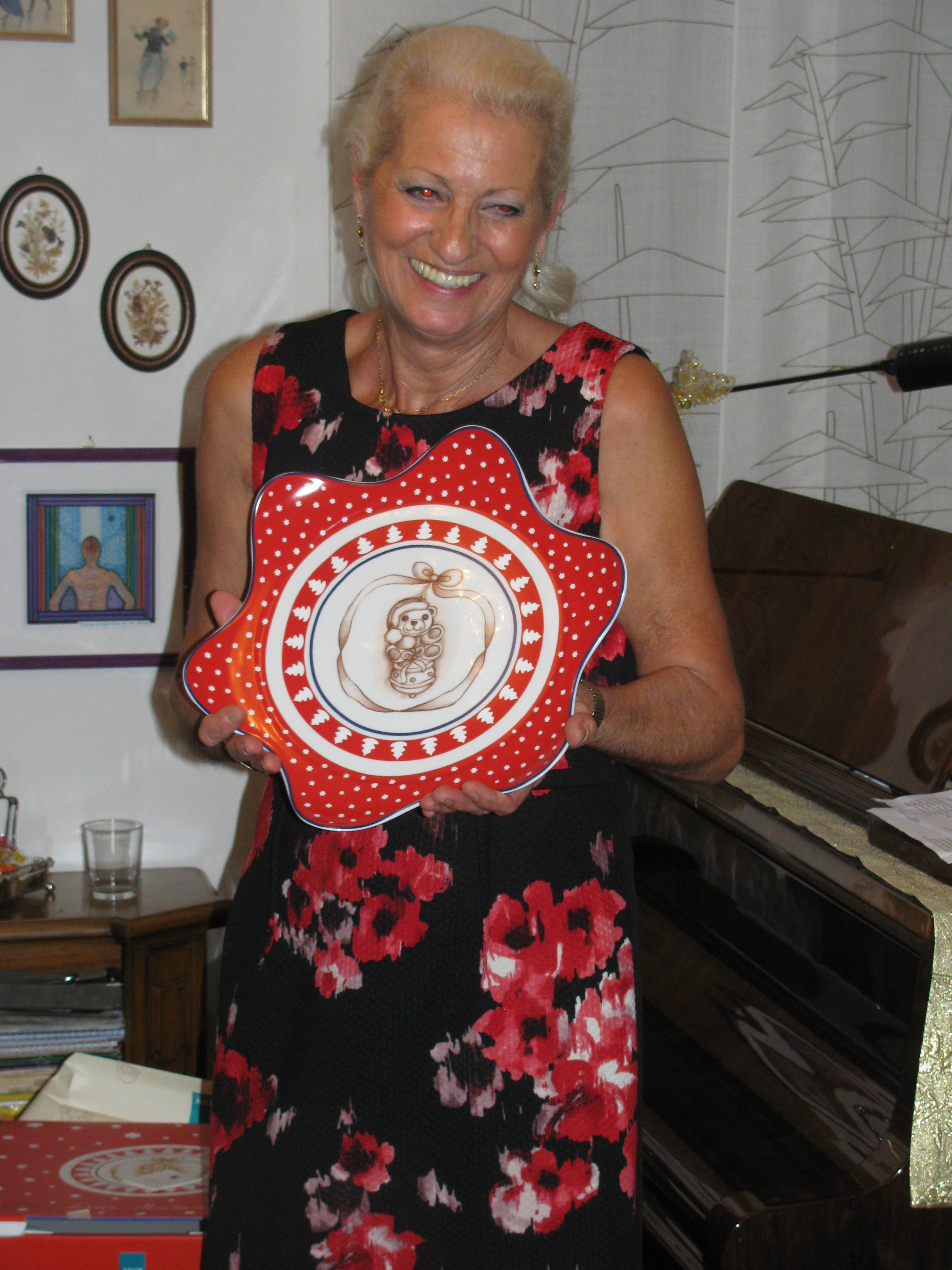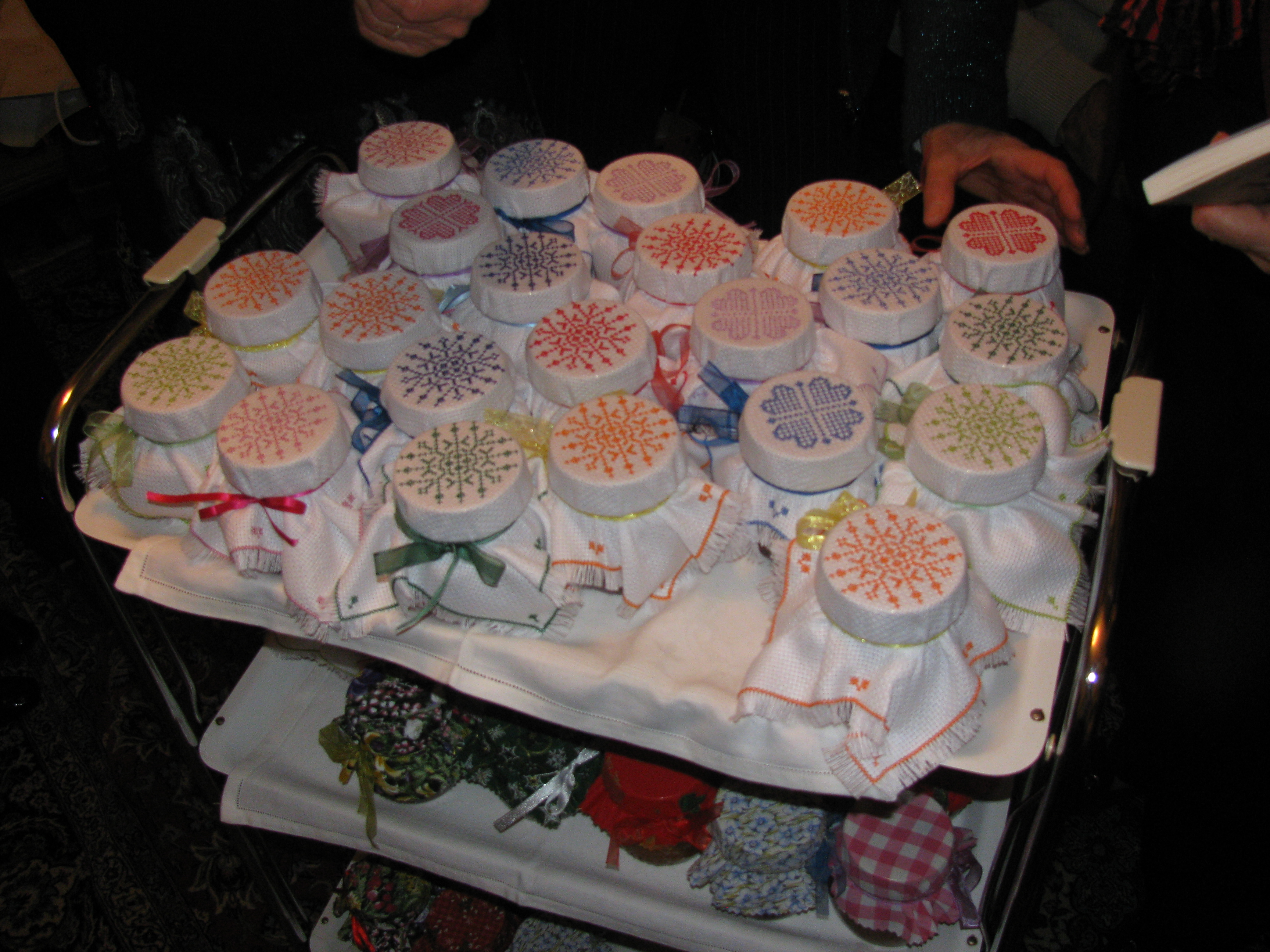 … e Cristina ha regalato ad ognuno di noi un vasetto delle sue marmellate, adornato da un centrino ricamato da Giovanna. Infine, siamo andati a casa stanchi ma felici per la splendida serata trascorsa. Grazie Cristina, Buon Natale a tutti!