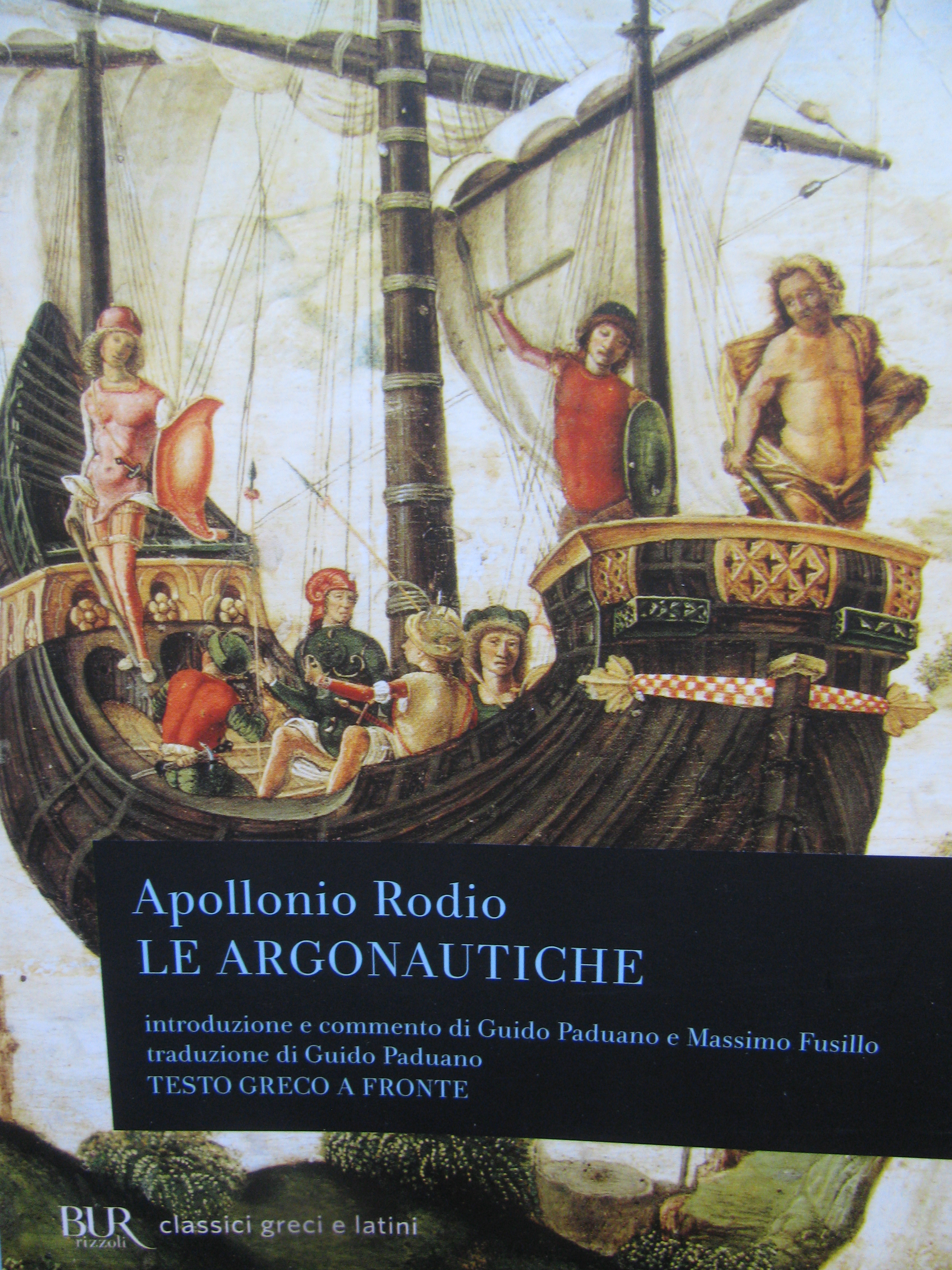 Nella quarta di copertina del libro (Ed. BUR) si leggono tre nomi: quello dell’autore Apollonio Rodio e dei due commentatori, Guido Paduano e Massimo Fusillo. Il primo è vissuto nel III secolo a. C.. Gli altri due vivono ancora oggi: accostamento molto significativo, a testimoniare la vicinanza dei contemporanei all’autore.