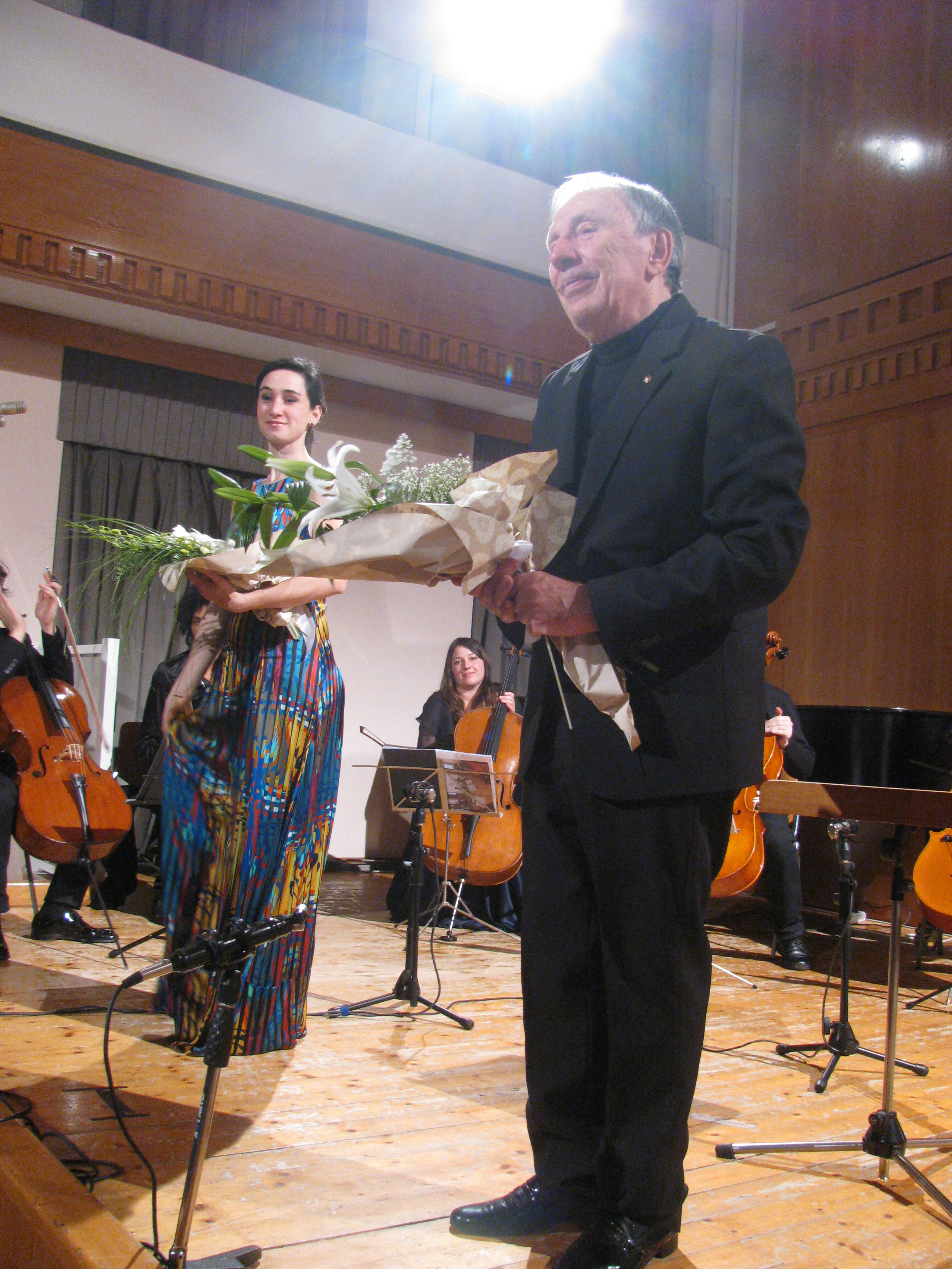 Fra una giacca e cravatta e il maglione rosso del M.° Giorgio Ulivieri, l’ “allievo”  M.° Umberto Ferriani