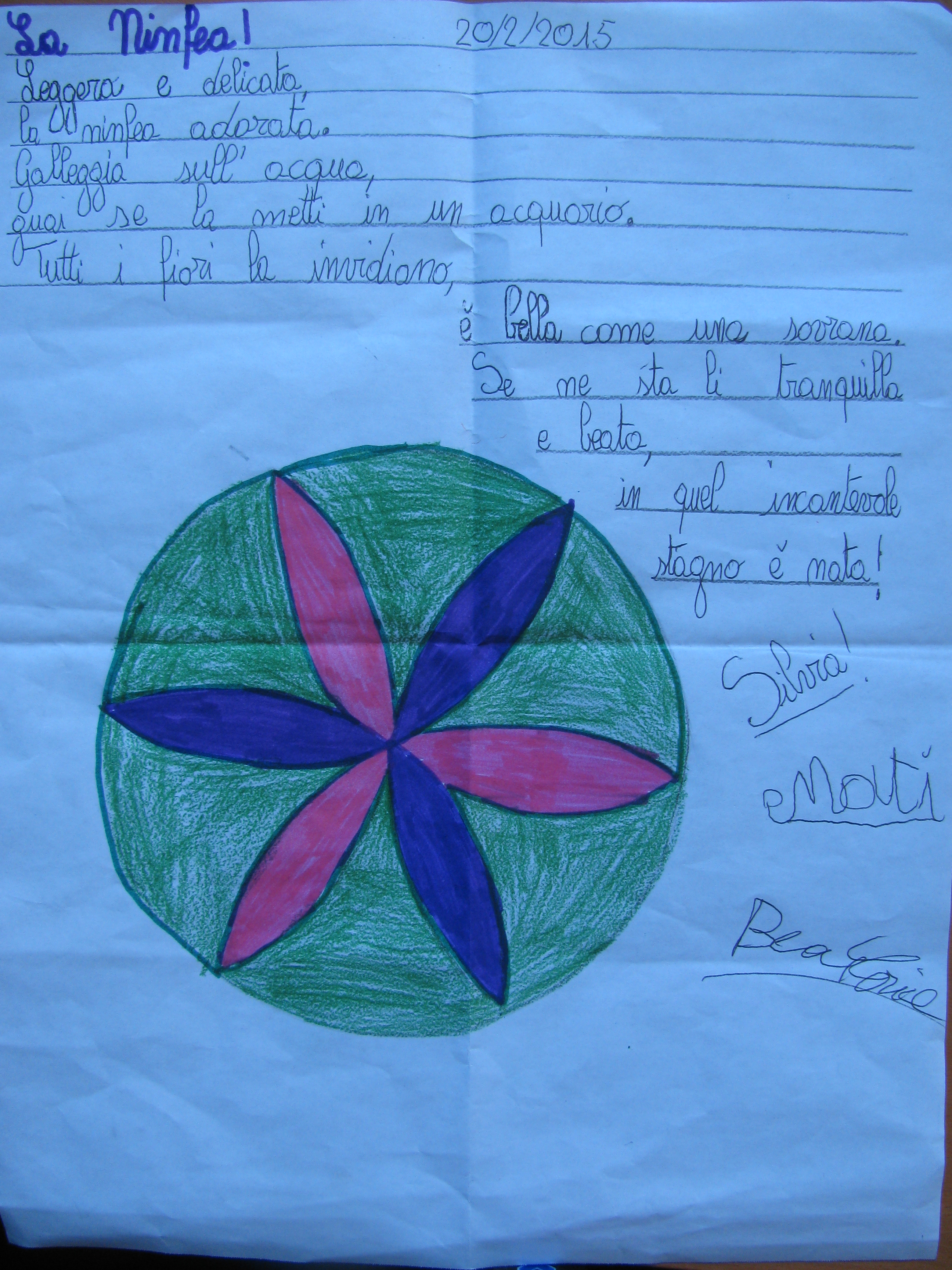 Open blog, blog aperto ai post (articoli) altrui. Questa volta tre nipotine – non mie purtroppo, che così la mia Sara avrebbe tre cuginette! – tre nipotine, dicevo, Beatrice, Matilde e Silvia (in stretto ordine alfabetico), saputo del mio blog, mi hanno chiesto di pubblicare un loro intervento, una loro composizione di poesia con arte figurativa. La poesia si intitola “La Ninfeaâ€: