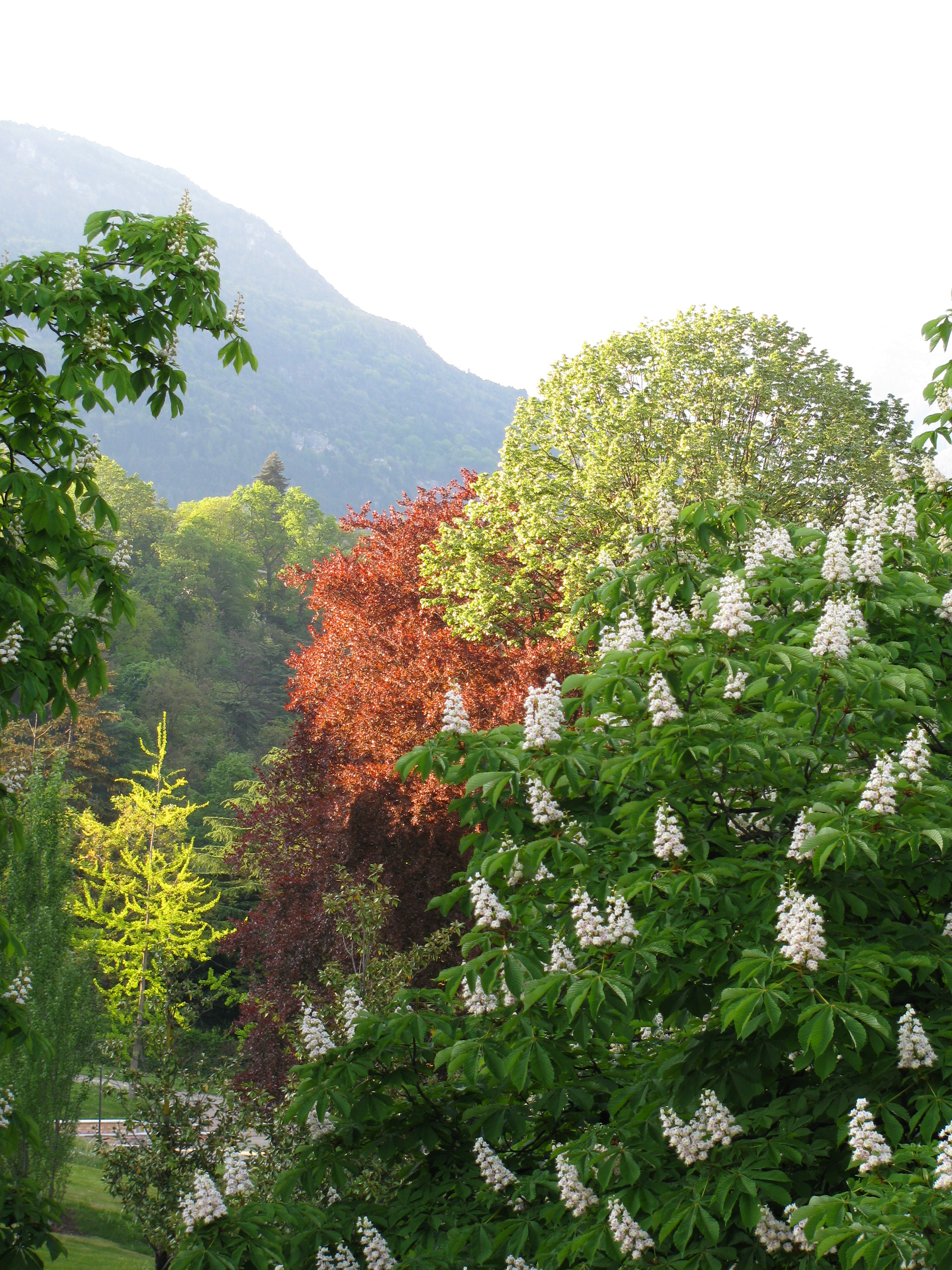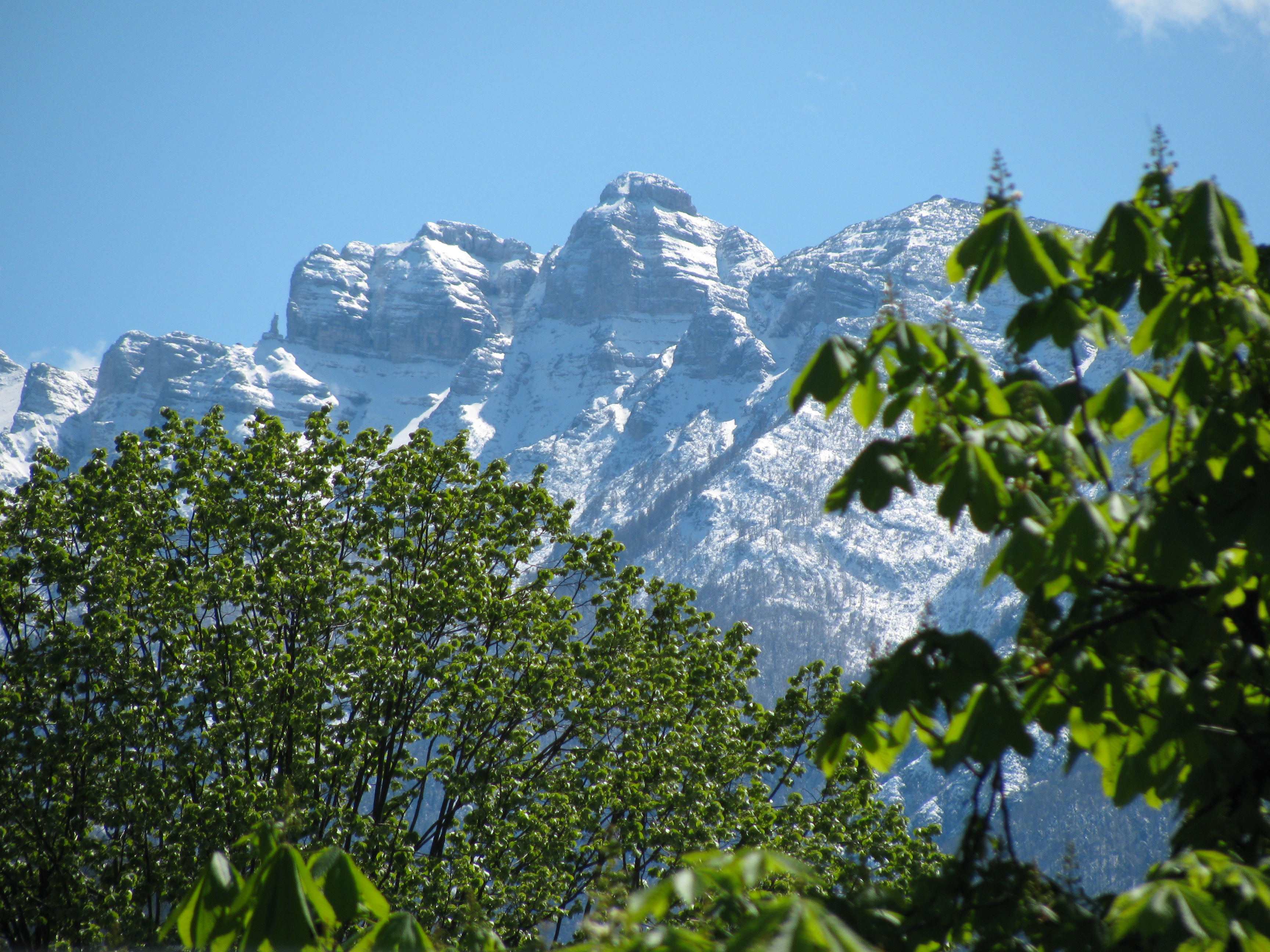 Viale Trieste, comunque, l’ Asburgica Trieste la richiama e come … Infatti scorre su bastioni imperiali costruiti dagli Austriaci per modificare il corso del Fiume Fersina (de la Fersena, in dialetto trentino). E sulla Fersena il Viale si affaccia, ricambiando con il verde delle chiome dei suoi ippocastani e con ricami di ombre e riflessi, l’acqua che le loro radici suggono dalle sue rive. Viale Trieste è una delle “riviere†di Trento, la più romantica, ai bordi della città , assai meno trafficata delle altre, che sono i due Lungo Adige. Di fronte già il bosco. Sullo sfondo la Vigolana, montagna “barometroâ€. Infatti quando la neve si fonde, a primavera, scompare quella macchia scura di rocce non innevate a forma d’orsa, l’Orsa de la Vigolana appunto, segnale dell’arrivo della primavera, per cui “Finchè ghe l’Orsa su la Vigolana no star a cavarte la maglia de lanaâ€.
