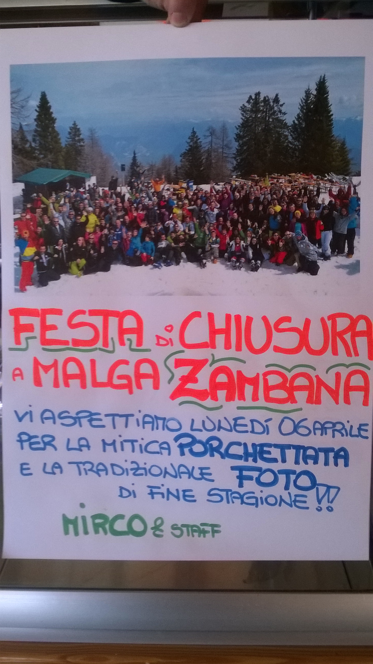 Oggi, comunque, ultimo saluto alla montagna che pu bele no ghe n’è … con una sosta a salutare Mirco & C., il nuovo (rispetto all’anno precedente) gestore della mia malga preferita, la Malga Zambana, vista Brenta. Mirco mi ha inviato alla festa sci-gastronomica del lunedì, ma io sarò con gli amici FIAB Trento alla prima pedalata della stagione nella Busa del Garda. Lo so che mi perderò qualcosa di buono, ma FIAB è FIAB!