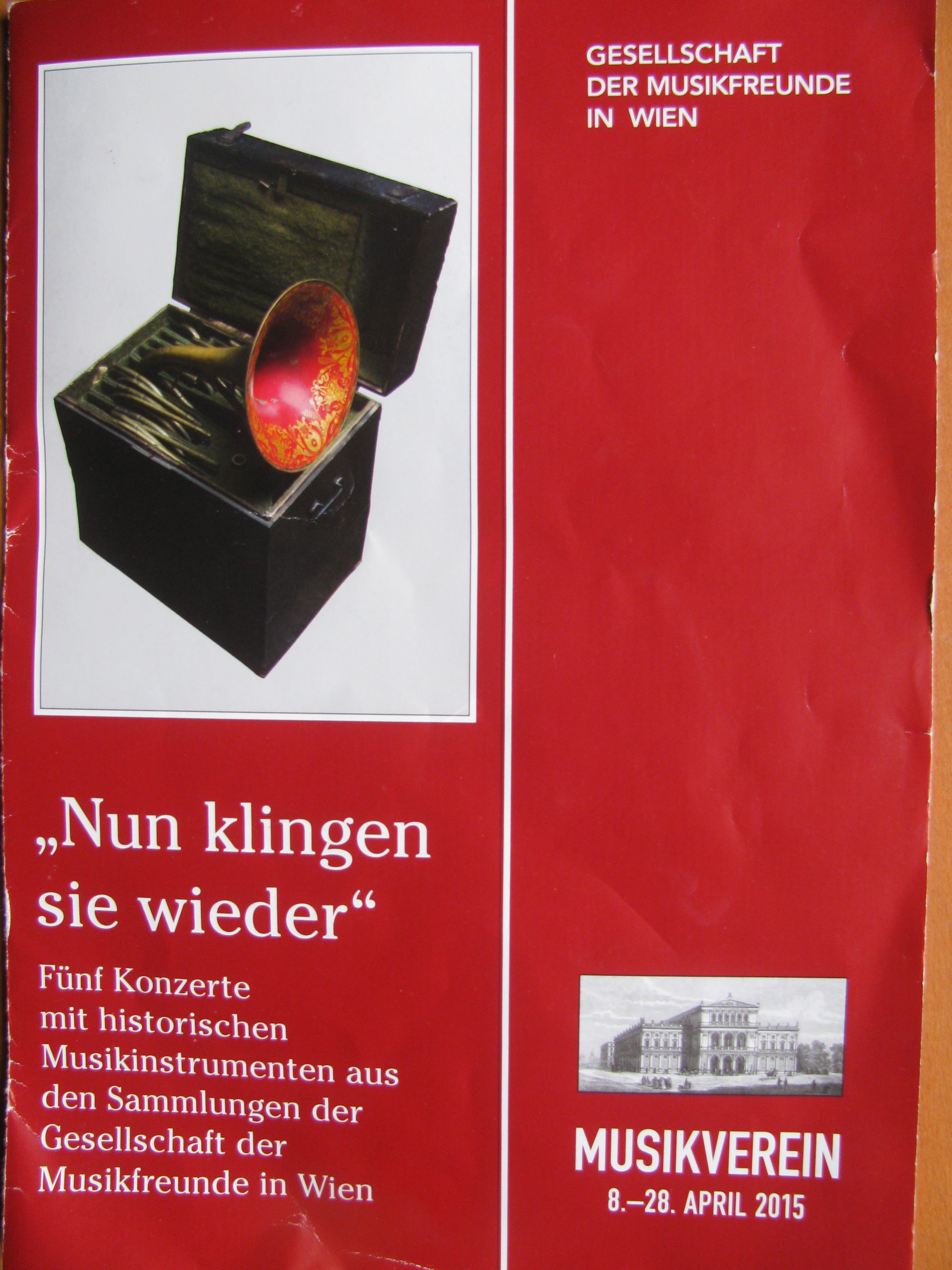 Ora suonano di nuovo. Chi? I vecchi … anzi, “antichi†strumenti musicali, fra i quali il fortepiano. “Fortepianoâ€? Per non ripetermi vi invito a rileggere i miei due post del 26 gennaio 2012: per trovarli, nel riquadro sotto il mio curriculum cliccate “fortepianoâ€. Ma perché un titolo in tedesco? Perchè Stefania suonerà il fortepiano nientepopodimenoché al MUSIKVEREIN di Vienna, sì … quell’Auditorium nel quale si tiene il famosissimo Concerto di Capodanno! E suonerà nel corso della manifestazione “Gesellschaft der Musikfreunde in Wien†(8-28 aprile 2015). In particolare Stefania suonerà il 17 aprile, con inizio alle ore 19,30 nella Glaeserner Saal, all’interno del concerto “Ein grosser Abend der kleinen Klaviereâ€. Saranno eseguite musiche di Ignaz Assmayer, Muzio Clementi, Graf Moritz von Dietrichstein, Josiph Haydn, Lorenz Schneider (riscritture di Mozart), Franz Schubert, Georg Christoph Wagenseil u.a..