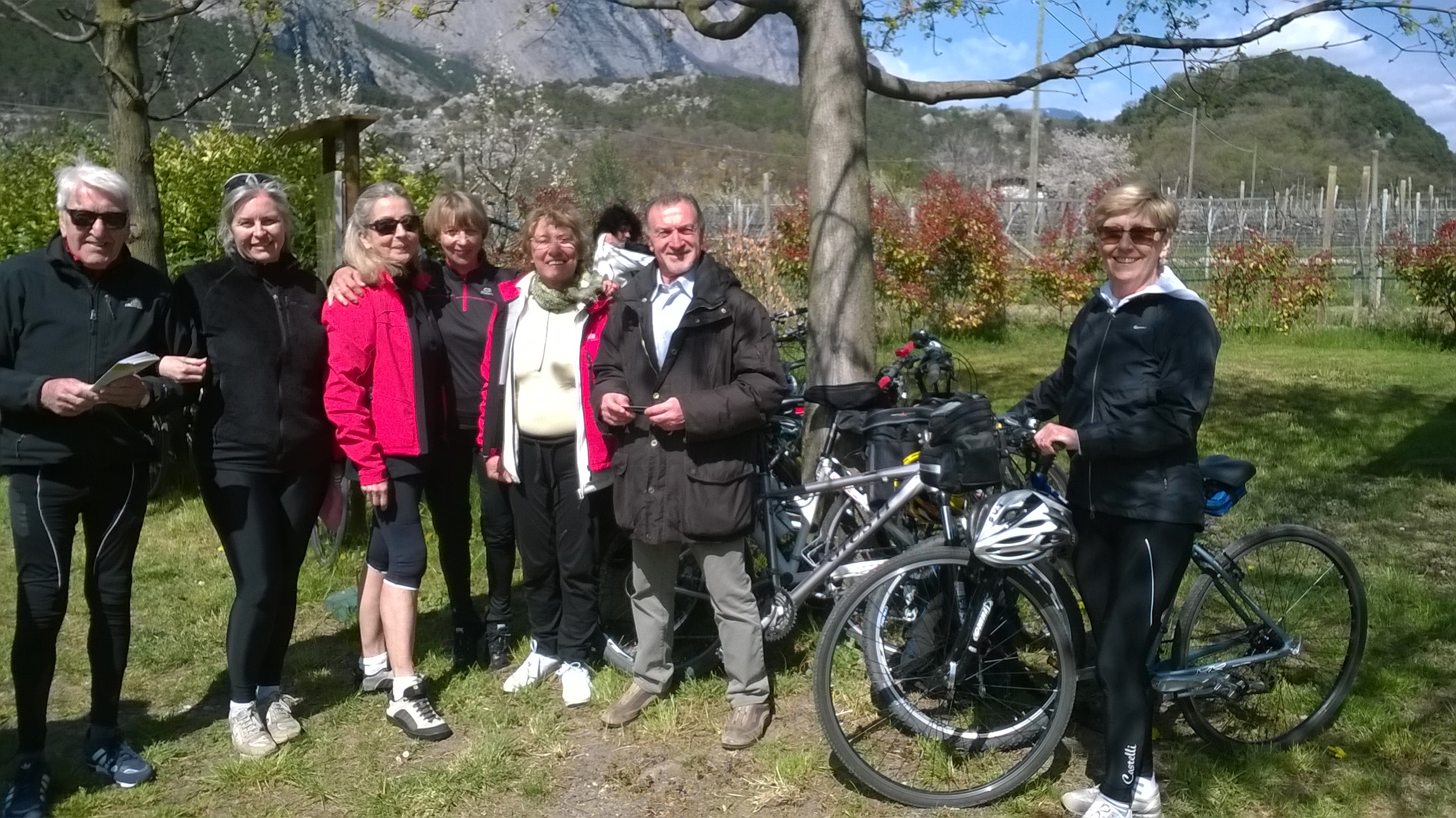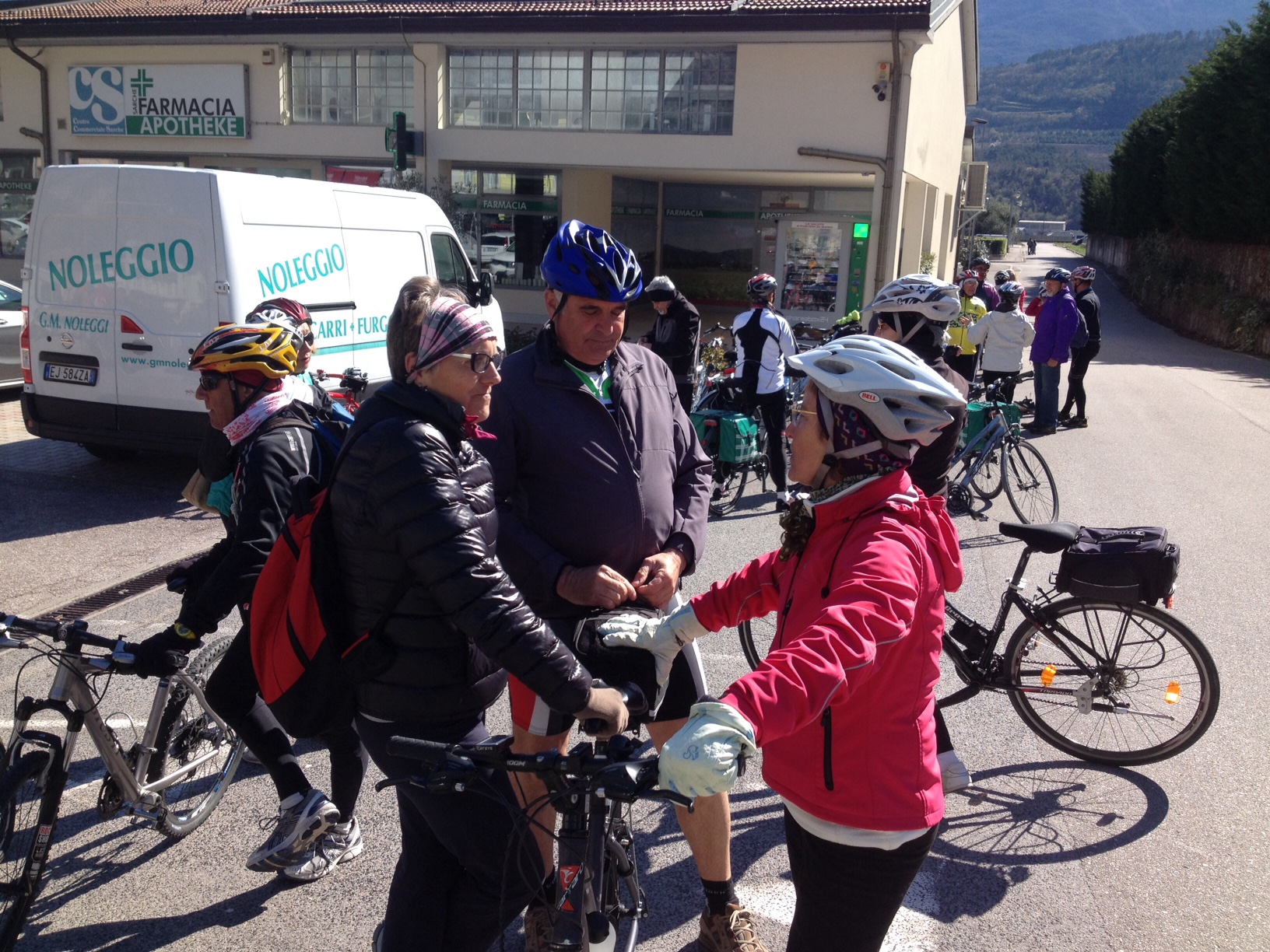 Mi vengono in aiuto gli amici della FIAB Trento, Federazione Amici della Bicicletta. Già , perché oggi noi Fiabbini facciamo la prima uscita di stagione, di una ricca stagione a pedali + amicizia + natura + cultura, quale risulta dal programma che trovate su www.slowbiketrento.xoom.it e che pertanto ometto di riportare in questa sede. La nostra Associazione locale di  biciclisti-ciclo-natural-turisti vanta circa 150 iscritti (in crescita ogni settimana!). Oggi, lunedì di Pasqua, eravamo in 36. Tutti sono arrivati in auto da Trento a Sarche.