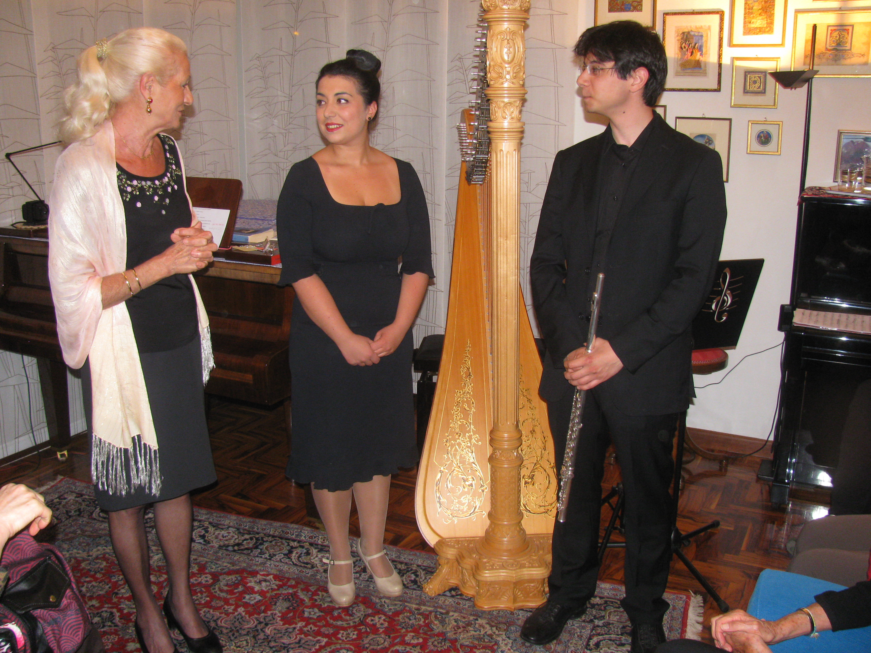Prima parte della serata: Flora Vedovelli all’arpa e Davide Baldo al flauto traverso, hanno eseguito un coinvolgente concerto: Di Marino, Suite – Bizet, Entr’acte – Gluck, Orfeo (Scena dei campi Elisi) – Bossa Nova – Andraessen, intermezzo – Morlacchi, Pastore Svizzero – Besame Mucho – Monti: Czardas. Applausi sentitissimi da standing ovation!