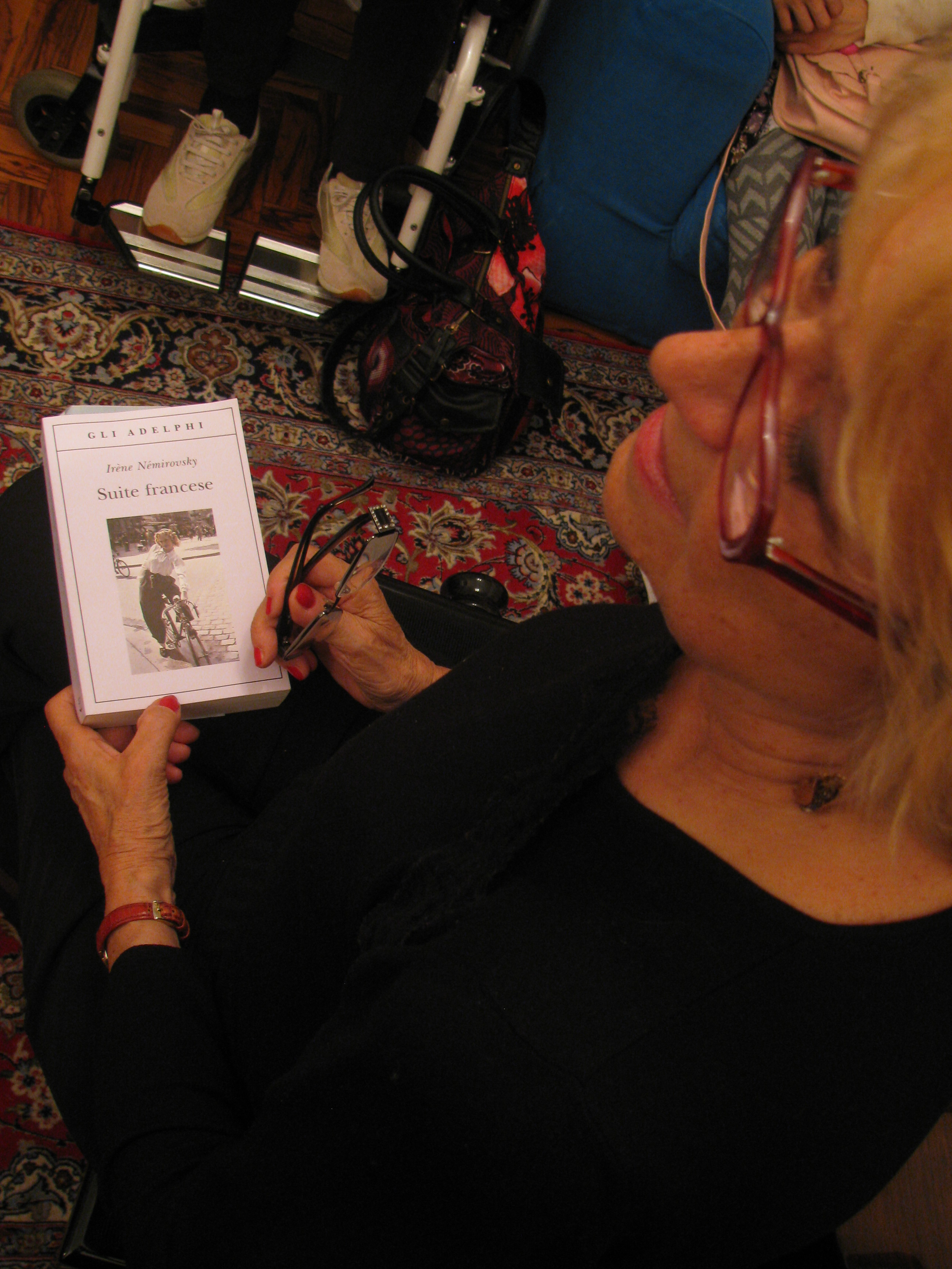 Last but not least, ultima parte della serata: Mirna Moretti ha condotto il dibattito sulla lettura da parte di tutti noi di “Suite Francese†di Irene Nemirowski. Introduzione ricca e illuminante, quella di Mirna, la quale ci ha ricordato la vita dell’autrice, ci ha suggerito la lettura della sua biografia, ha elencato la copiosa produzione letteraria di quella giovane donna, uccisa dai nazisti a soli 39 anni. Numerosi gli interventi: Maria Grazia, Maria Teresa, Maria Luisa, Paolo e molti altri.