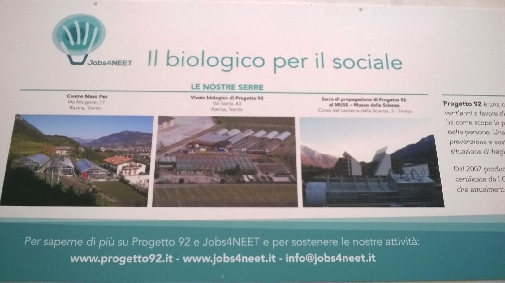 Lo scorso 17 marzo la cooperativa Progetto 92 ha inaugurato il nuovo vivaio biologico in via Stella a Ravina, in prossimità del negozio Tuttoverde della Famiglia Detassis, ampliando in questo modo la propria consolidata attività nel settore delle serre, con 5.000 mq di produzione complessiva. L’iniziativa consentirà di inserire in percorsi di socializzazione al lavoro una quindicina di nuovi ragazzi e ragazze con vulnerabilità sociali, scolastiche e familiari. In questo modo, per il 2015, saranno una settantina i giovani inseriti nel progetto Jobs4NEET, l’iniziativa di inclusione sociale e lavorativa per i giovani di Progetto 92.