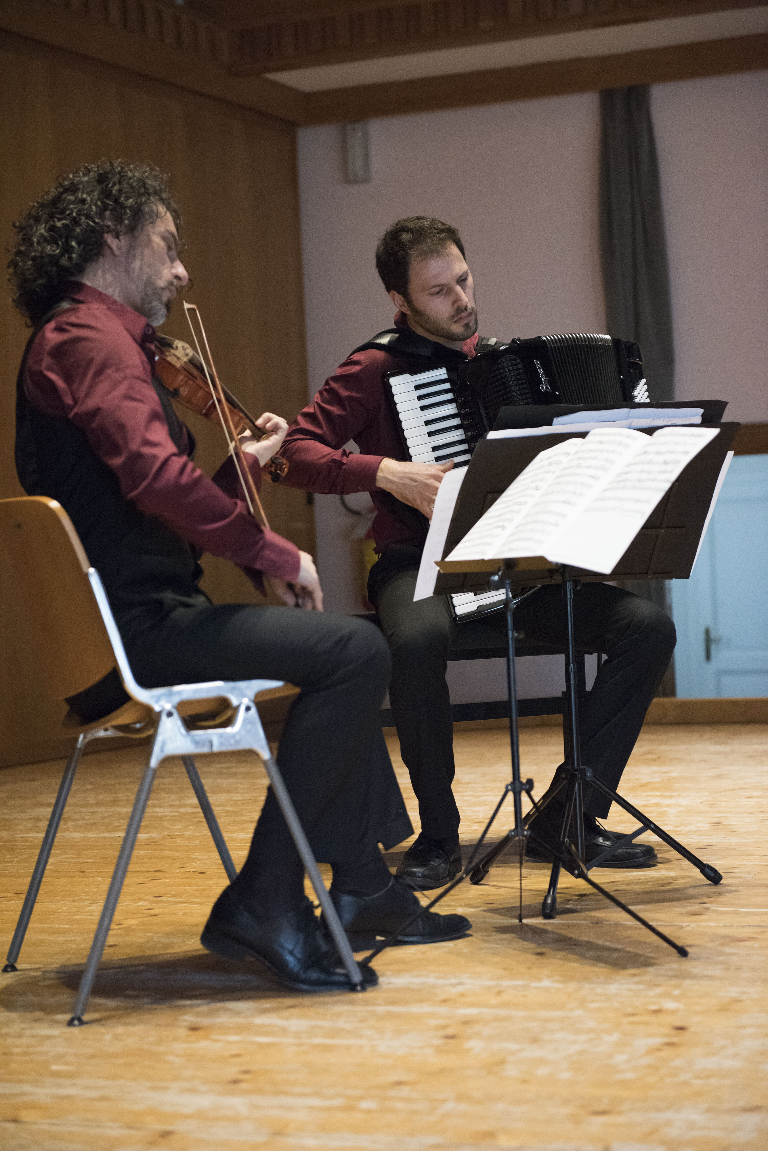 Protagonisti un violino, quello di Antonino Granata, ed una fisarmonica, quella di Marcello Grandesso. I musicisti, uniti in duo dal 2013 …  “secondo una strutturazione sulle timbriche dei rispettivi strumenti, pongono attenzione alla divulgazione della musica come componente fondamentale nella formazione culturale della persona, a partire dall’educazione dei giovaniâ€.