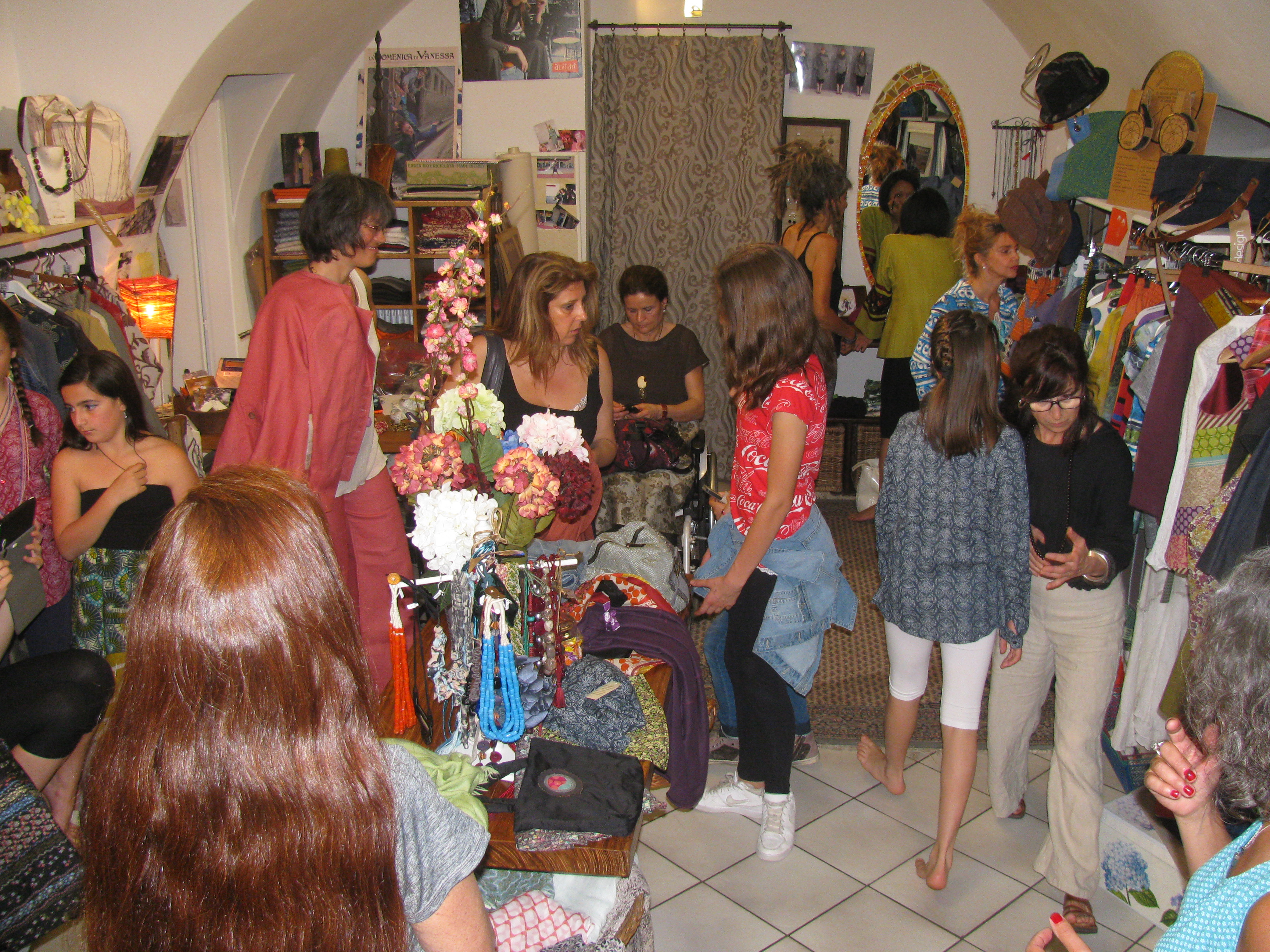 Ma torniamo alla sfilata di ieri. Sfilata di moda con modelli a km zero, creati da idee locali, ispirate a paesi lontani, presentati da Donne comuni, Donne di tutti i giorni, ragazzine, ragazze: comunque Donne reali, non  modelle “molto sottopeso pur di sfilare†… il tutto organizzato dalla titolare di un piccolo, prezioso negozio che si affaccia sulla via, “IMAYAâ€, ovvero, “Iniziative da indossareâ€.
