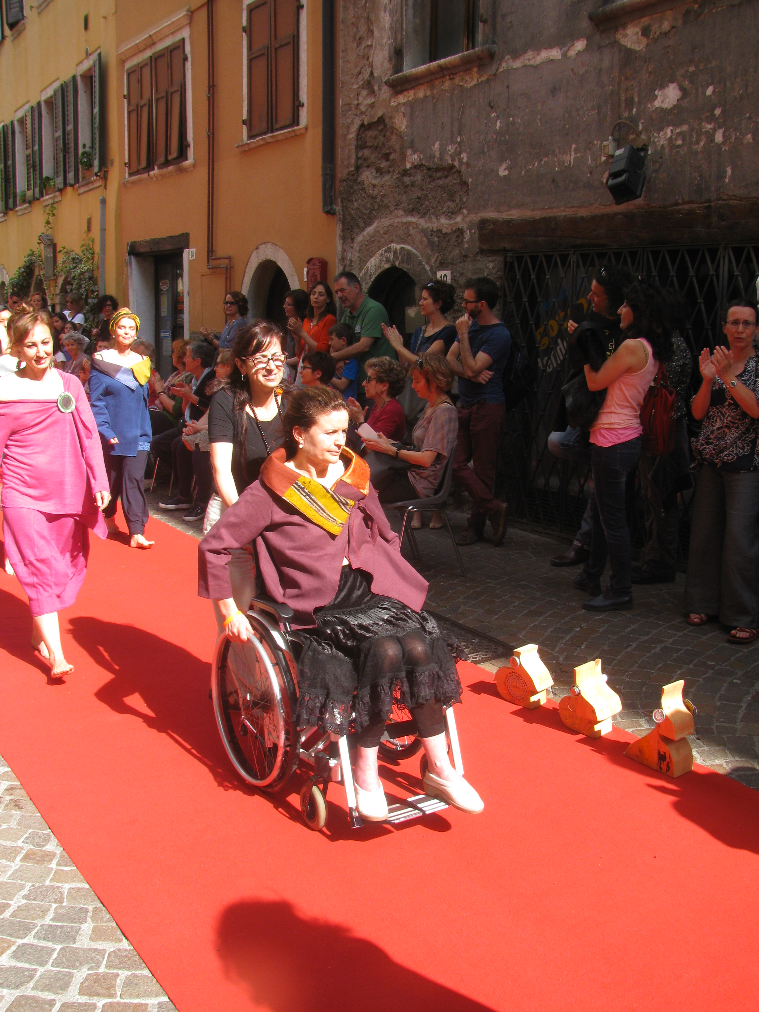 Trento. Le Laste, la Portèla, le Androne erano i quartieri poveri della città . Le Androne, alcune viuzze … quella a ridosso del muro di cinta medievale – “Via dietro le Muraâ€, io la chiamo Wall Street – e l’altra, poco discosta, parallela, “Seconda Androna di Borgo Nuovo†che collega Via Mazzini a Piazza Garzetti, più semplicemente l’Androna: oggi sono vie storiche, centrali, ambite, direi “chicâ€. Ebbene, per una di quelle stradicciole … per dirla con il Manzoni, si è svolta ieri una sfilata di moda.