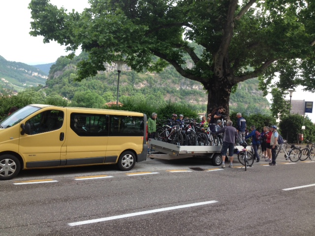 Rientro in treno a Trento, Via Verona, con le bici che viaggiano sul furgone.