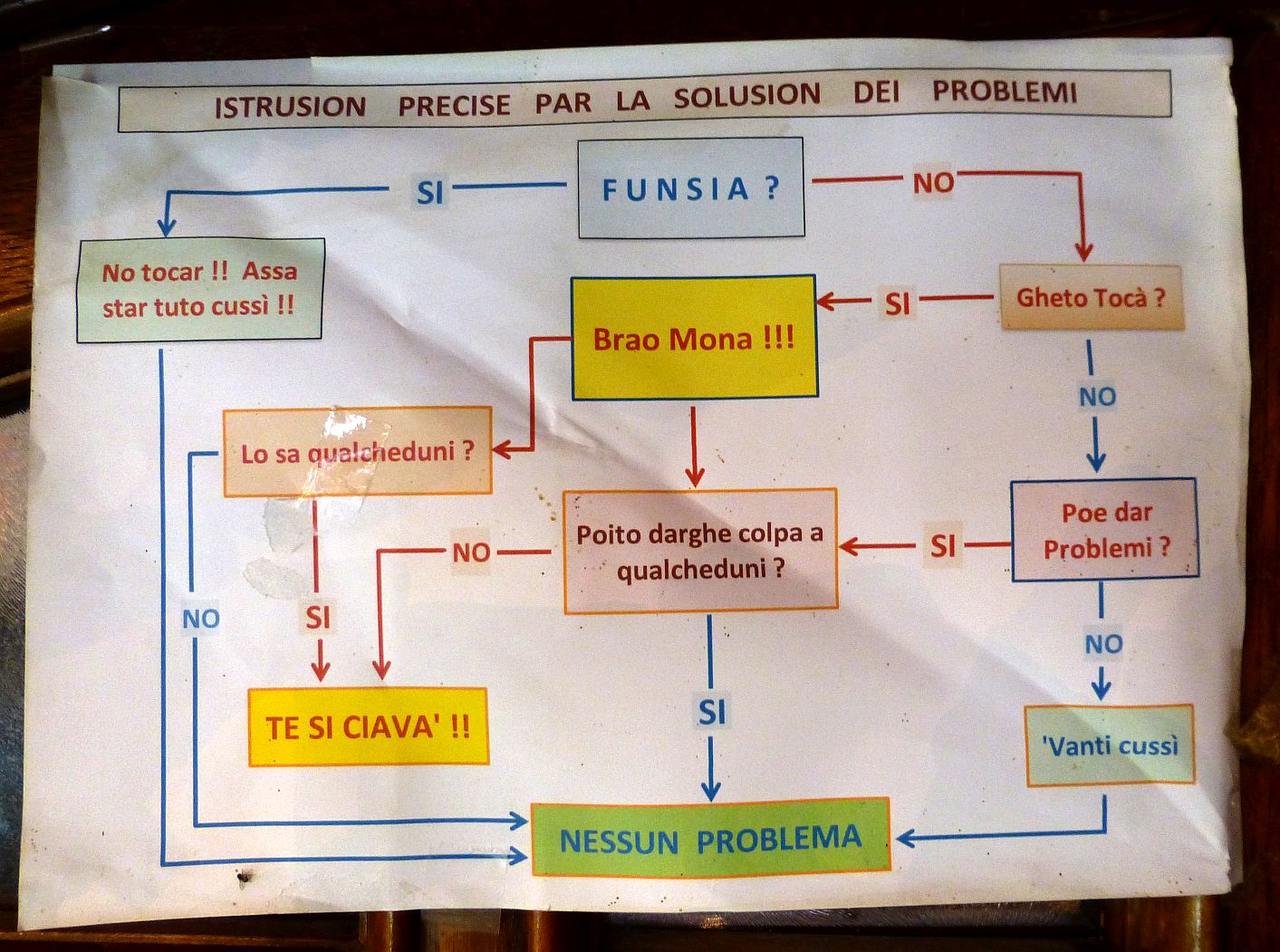 Quaeta non movere (si legge “movèreâ€, non “mòvere†che sarebbe romanesco e non latino!) recita un antico proverbio latino, anzi “romano†di ieri ma anche di oggi, purtroppo: non smuovere ciò che è immobile … Ed io, pedalando lungo il Sile (Sile: fiume che bagna Treviso), in un bar ho trovato esposta quella che di fatto potrebbe essere la traduzione in lingua veneta del motto in latino.