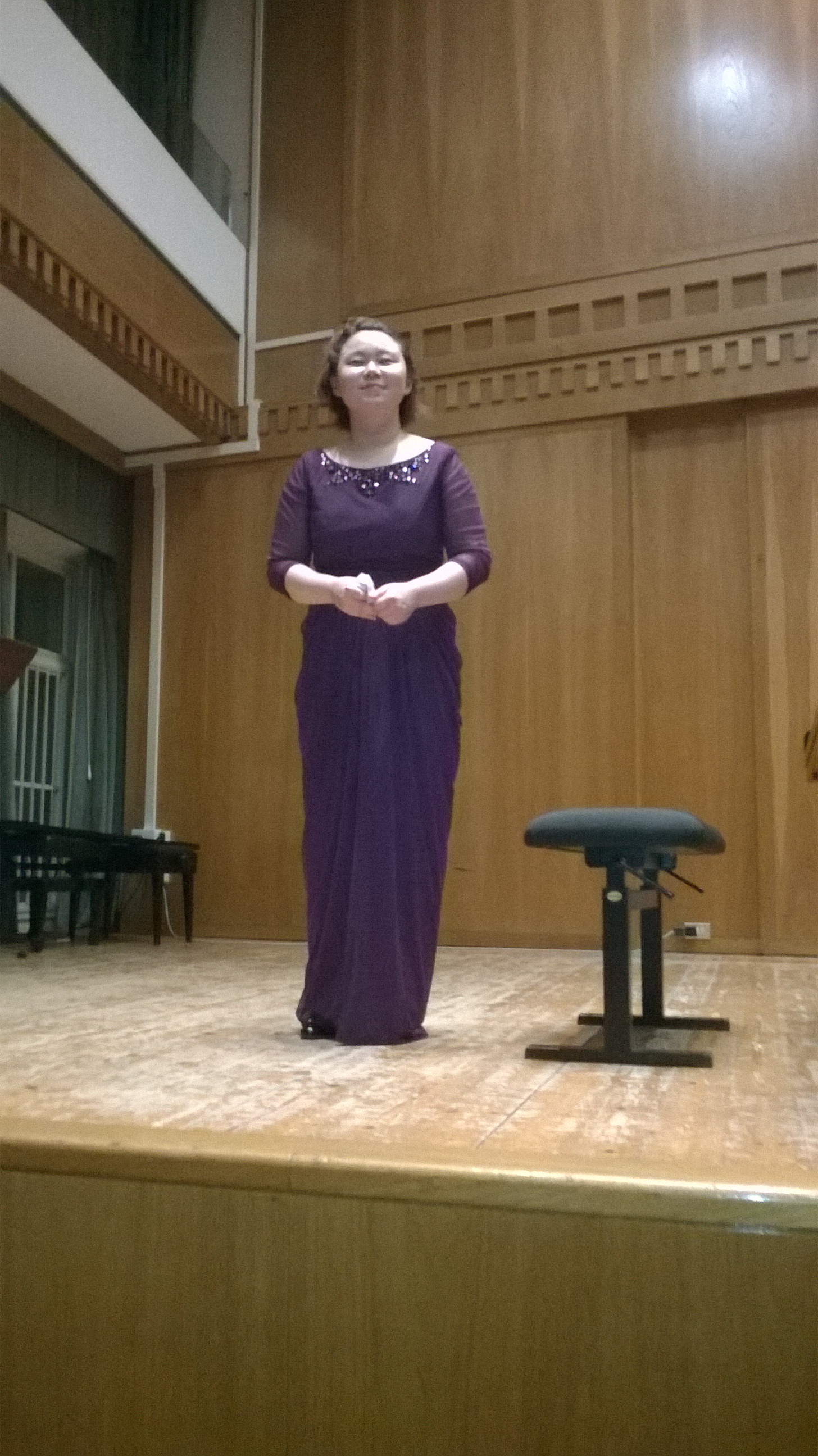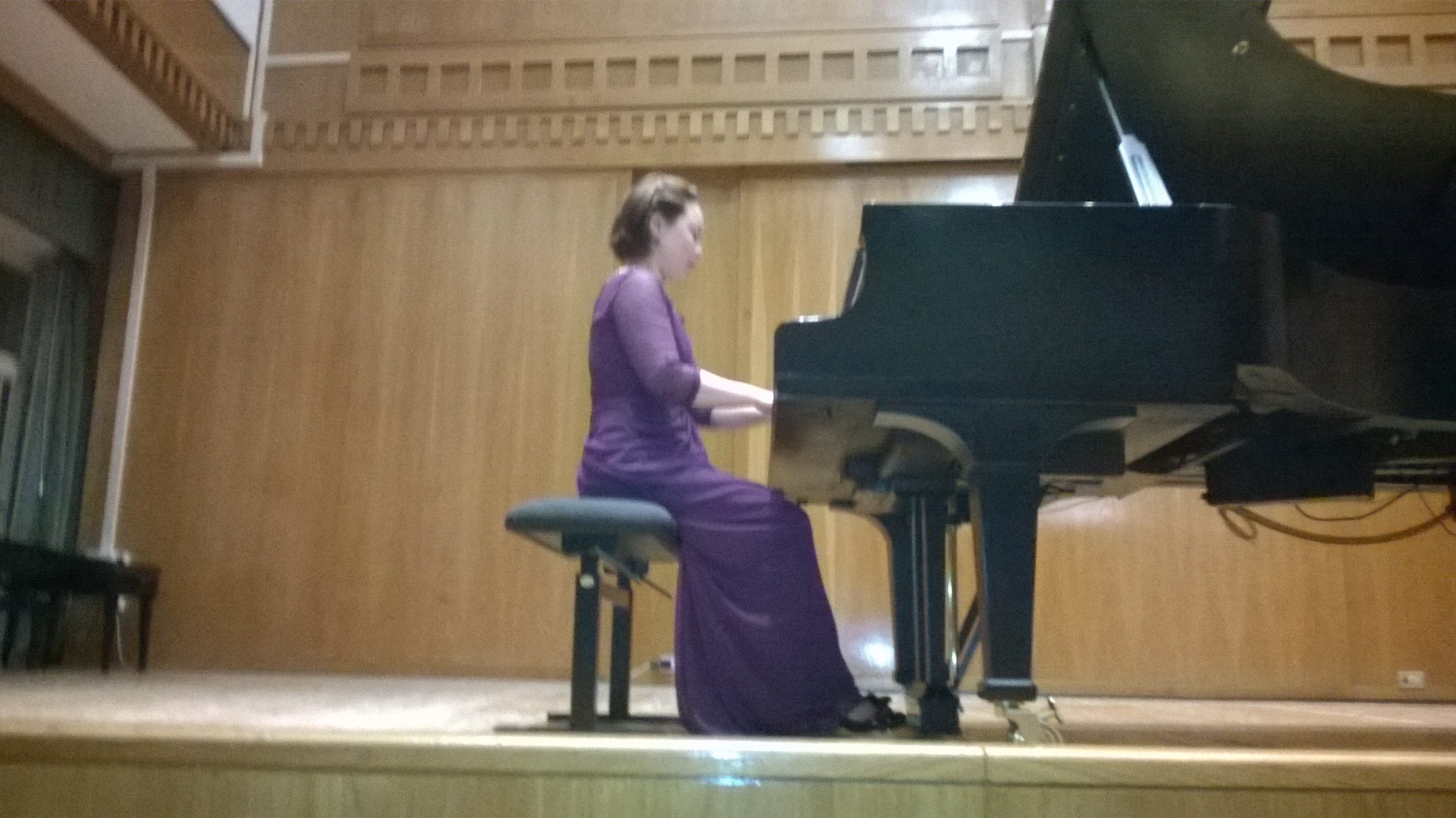 Al Conservatorio  a prendere confidenza con il pianoforte a coda. Lo guarda … ne legge la matricola … “E’ del 1930†dice. Indovinato. Per lei è importante conoscere il suo “partnerâ€: infatti in ogni pianoforte la parte meccanica, benchè revisionata e accordata, mantiene una sua caratteristica che va conosciuta e gestita dal musicista. Mi vengono in mente i miei colleghi ciclisti, sciatori e velisti: i migliori sono attenti ad ogni minimo particolate delle biciclette, degli sci e delle vele! E la nostra ospite è una “miglioreâ€.