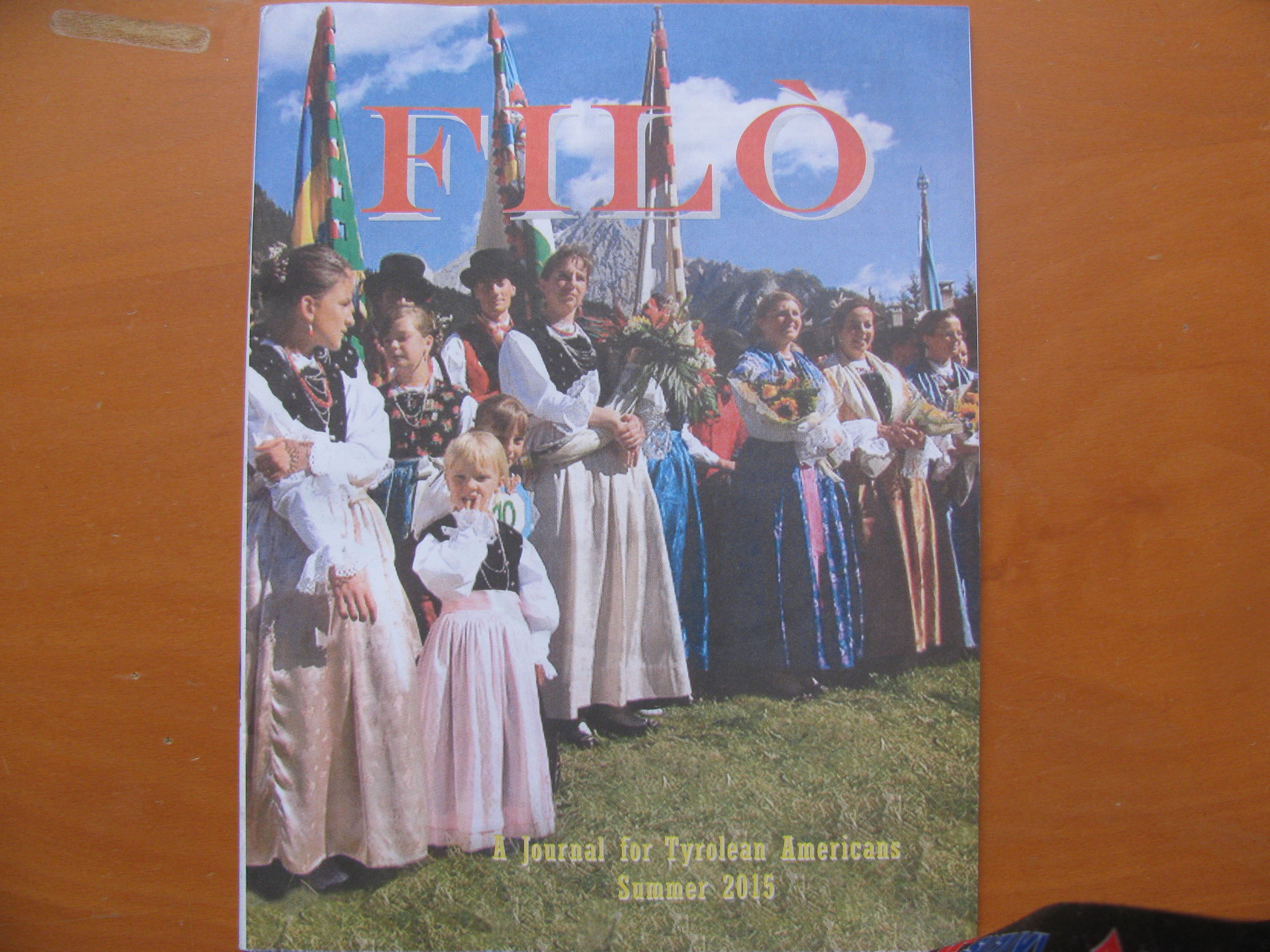 Fra l’altro, ricordo volentieri che Luis Brunelli, la cui famiglia è originaria di Rango (TN), ha ideato, sta pubblicando e spedisca gratuitamentea ben 6.000 oersone in USA e canada la rivista FILO’ – A journal for Tyrolean Americans – Tirolesi? Ma Lui, Louis, non è Trentino? Si, spiega egli stesso, ma quando i miei sono emigrati negli USA, eravamo Tirolesi e tali ci piace definirsi anche oggi, semplicemente per non dimenticare le sue origini.