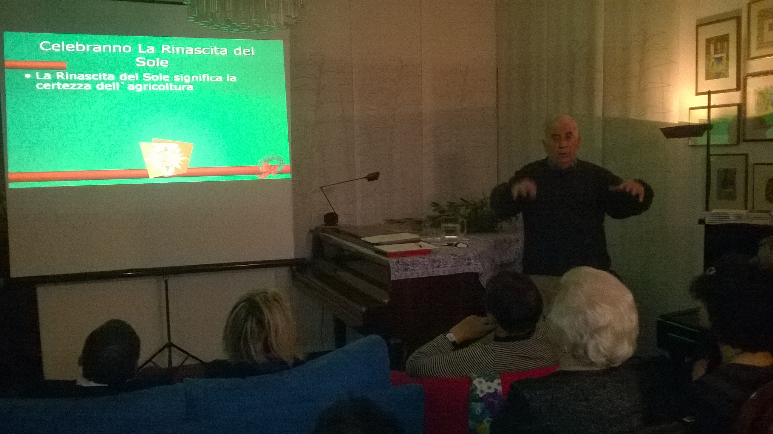 Ieri sera eravamo in cinquanta! La prima parte della seratona – perché di seratona di è trattato! – è stata appannaggio di Luis Brunelli che, con il suo simpatico accento metà trentino e metà newyorkese, ha ripetuto l’esposizione che trovate nel post del 14 novembre 2014 (cfr. ivi) sulle origini storiche e la storia del Natale.