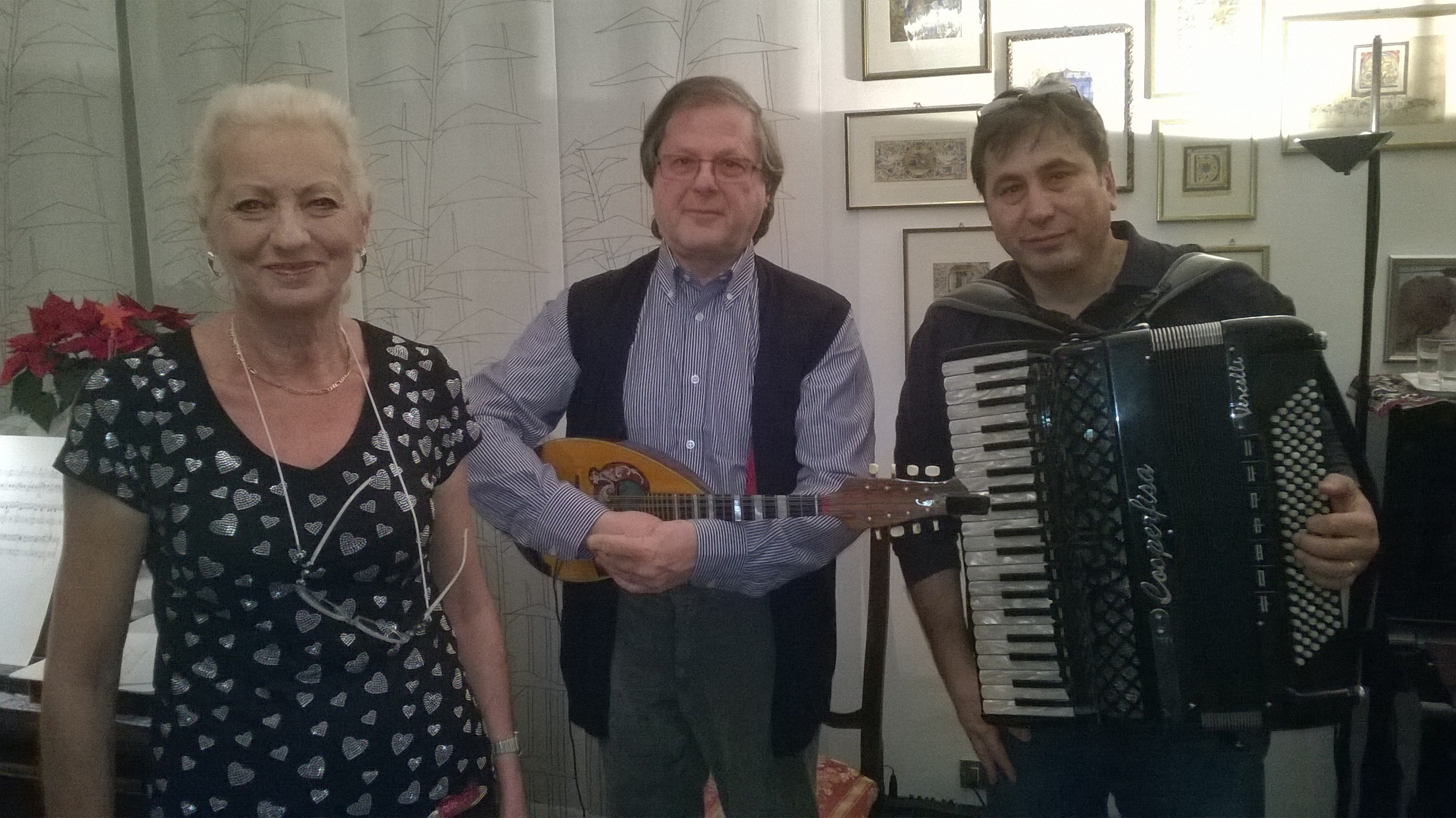 E poi … prima parte della serata, musica! Tudor Ampana (Moldavia) alla fisarmonica e Alessandro Boni (Rovereto) mandolino e chitarra, in un brano accompagnati da Cristina al pianoforte. Il programma di sala … non lo riporto nell’ordine, perché innanzi tutto cito i due brani che hanno entusiasmato: Libertango di Piazzolla e il Valzer n.2 e di Sostakovic. Intendiamoci, senza nulla togliere agi altri brani: Arioso di Bach; Serenata di Schubert; Monastero ‘e Santa Chiara di Galdieri.Barberis; Tango pour Claude di Galliano; Oblivou di Piazzolla; Jazztango di Topo-Vezzoli. Chitarra/violino fisarmonica, su musica armonizzata dagli stessi musicisti, visto ch non esistono partiture oper questo ensamble. Doppio merito, quindi! E alla fine “standig ovation! Grazie, amici! Complimenti e “bravòâ€.