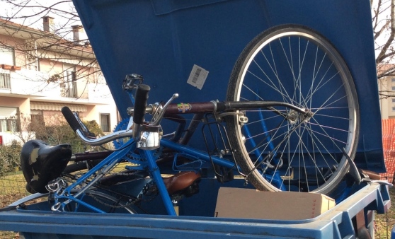 Mi segnalano (Manuela Demattè, past President Fiab) che il Trentino Corriere delle Alpi riporta che in questi stessi giorni anche ad Arco, Via Fornaci, vige l’usanza barbara del consumismo sfrenato e della mancanza di rispetto delle regole della civile convivenza: infatti, nei cassonetti per la raccolta differenziata, dopo avere depositato nei giorni precedenti una rete “matrimoniale”, qualcuno ha pensato bene di depositare anche due (due) biciclette!  Ecco, this is FIAB too … FIAB è anche questo: cercare di educare la gente a non sprecare i beni di cui disponiamo e a rispettare le leggi, i regolamenti e anche il “diritto dei privati”, quello che ognuno di noi ha di non vedere  vanificato il proprio “contributo di civiltà “.