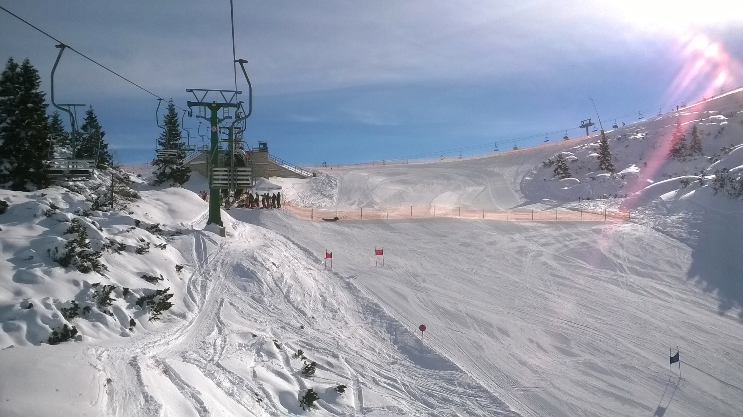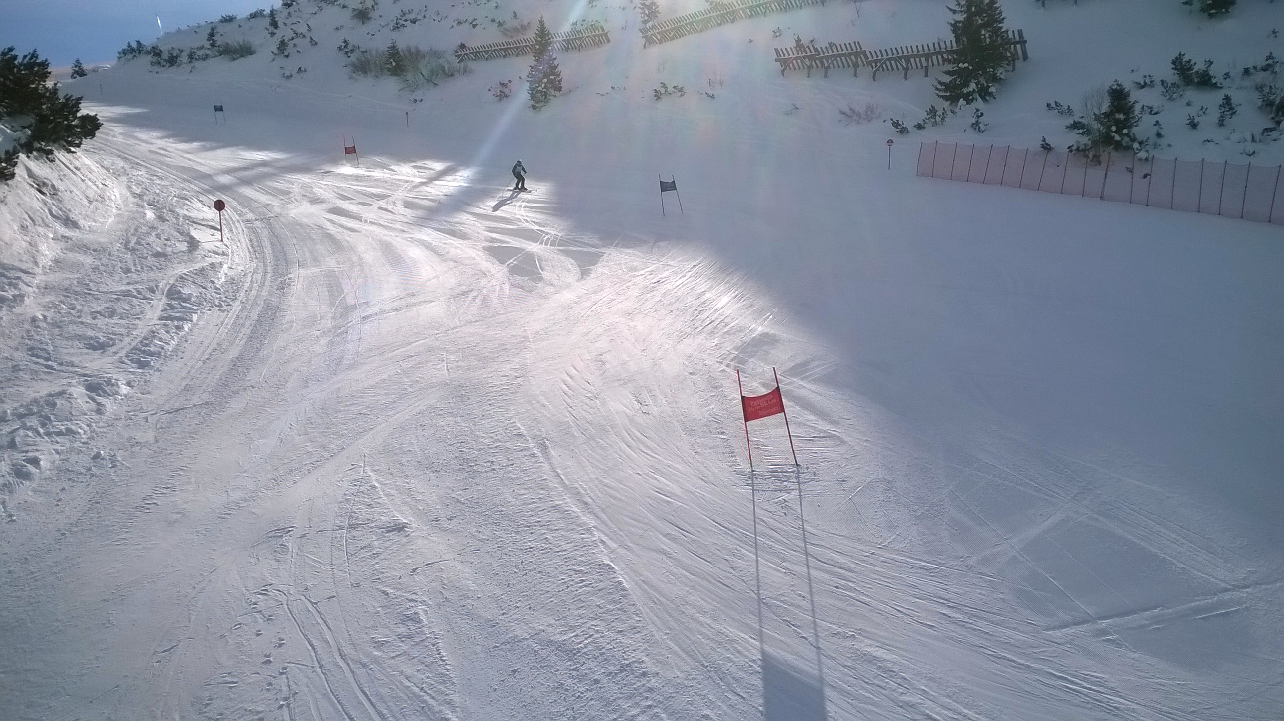 Oggi non più. Io ci sono arrivato aggirando gli sbarramenti prima che iniziasse la gara. Gara fra gente molto principiante, che scivolava (lentamente) più che sciare, che di una pista larga dai 40 ai 70 metri  occupava solo una fascia di 10. E allora, perché no?