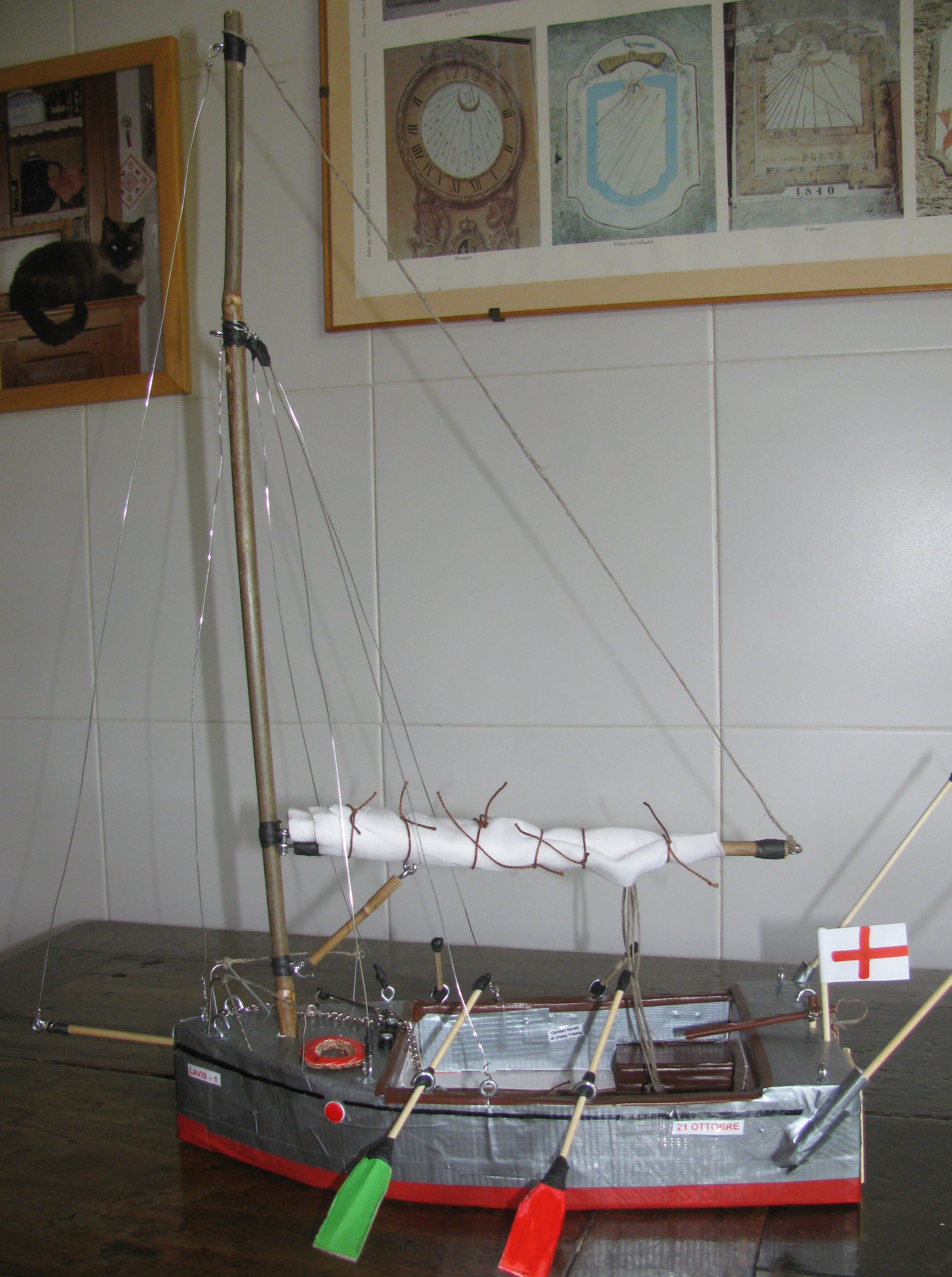 Il nome è indicato a poppa: “21 Ottobreâ€, data di nascita della mia nipotina Sara. A prua è indicato il porto di ormeggio (Lavis, TN) e il numero di immatricolazione “1â€, quindi “LAVIS 1â€.