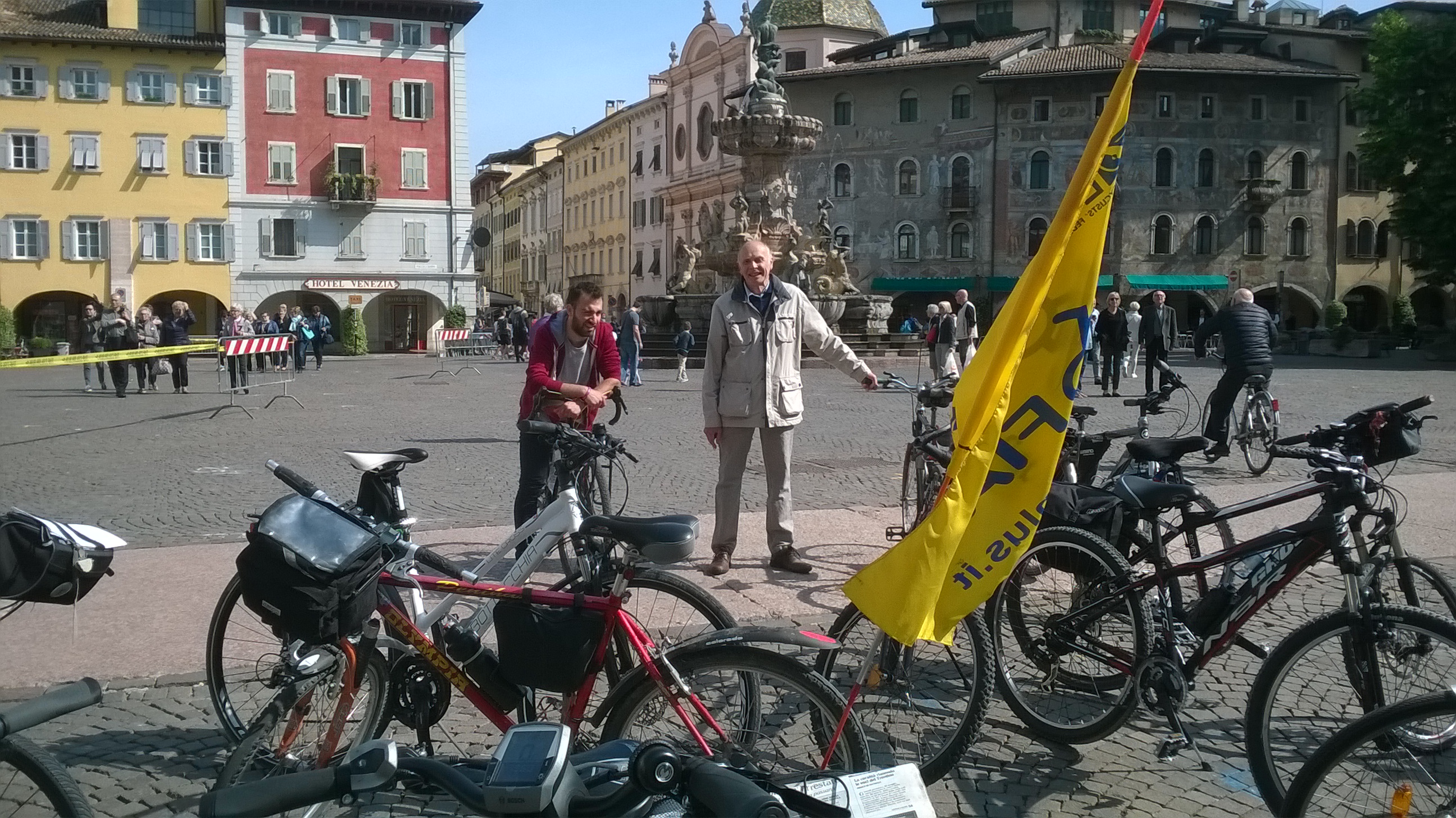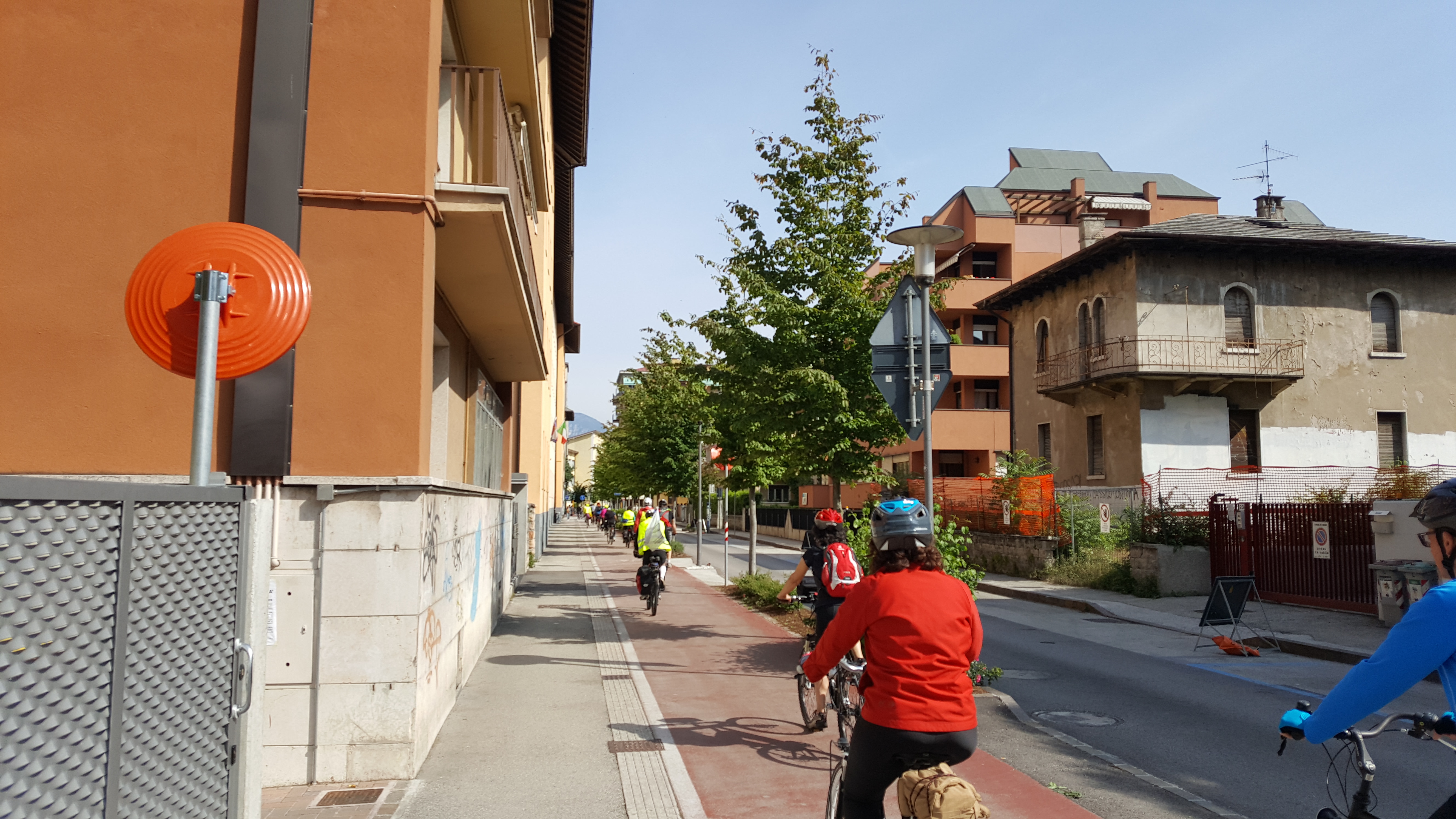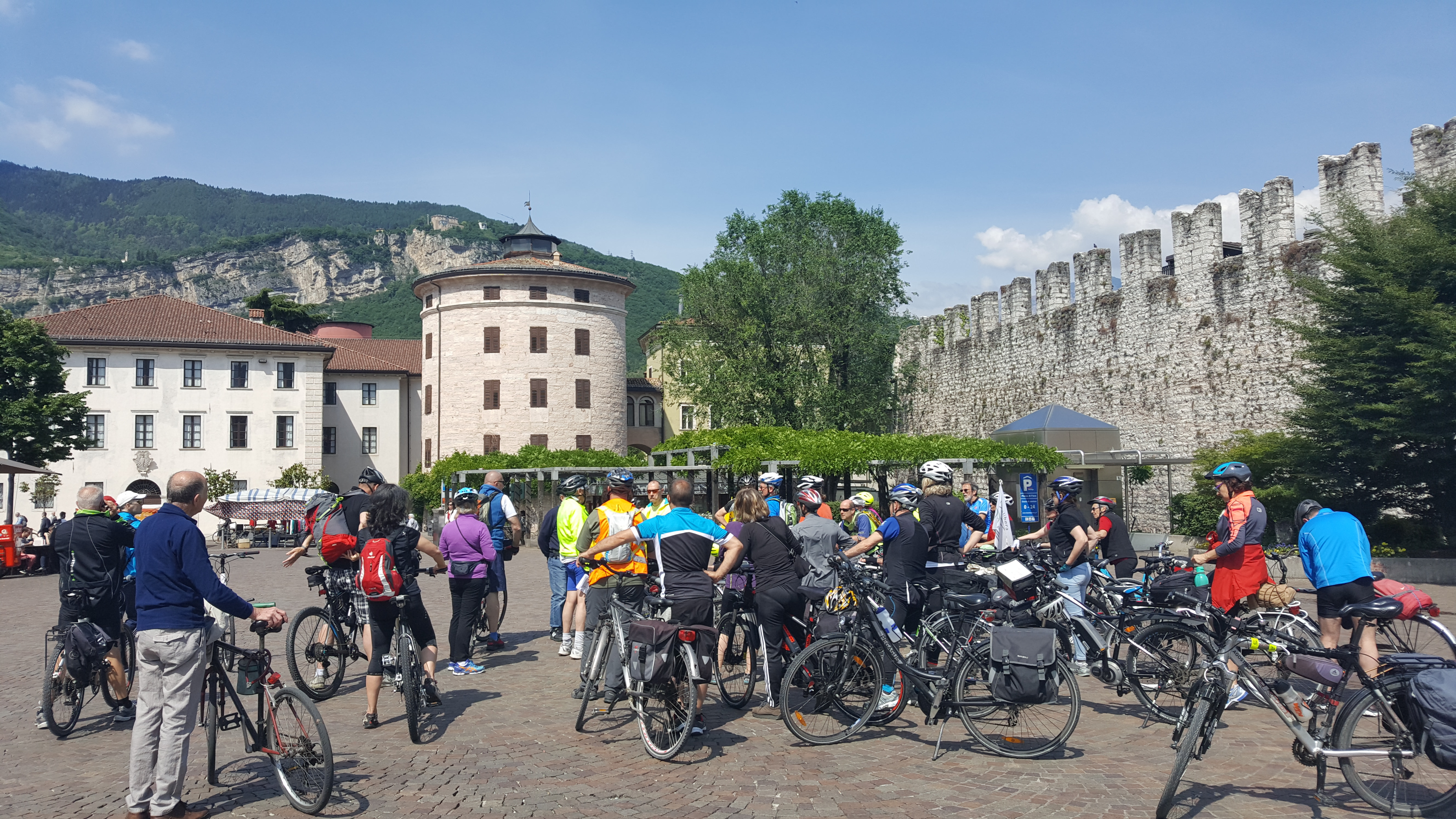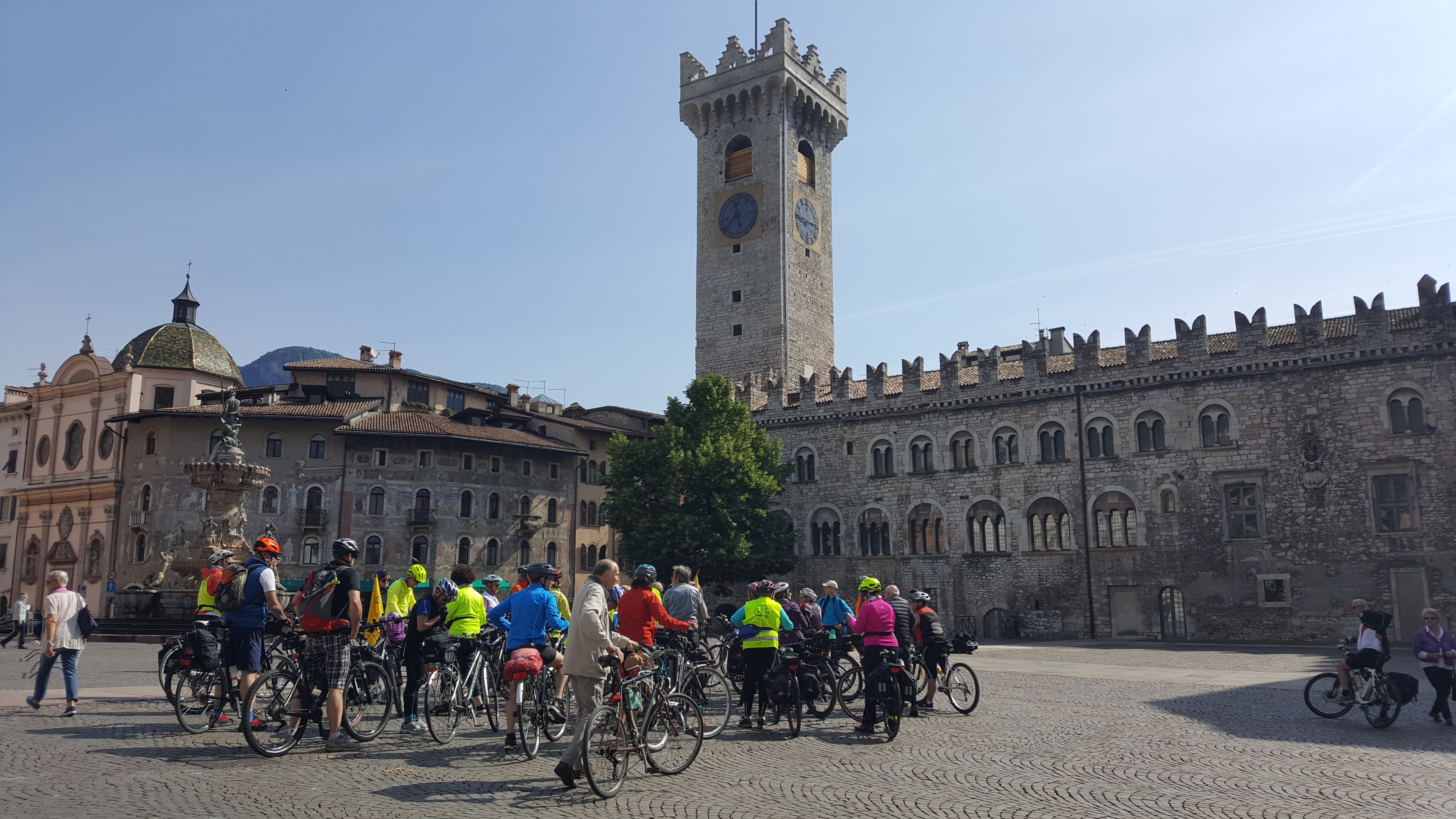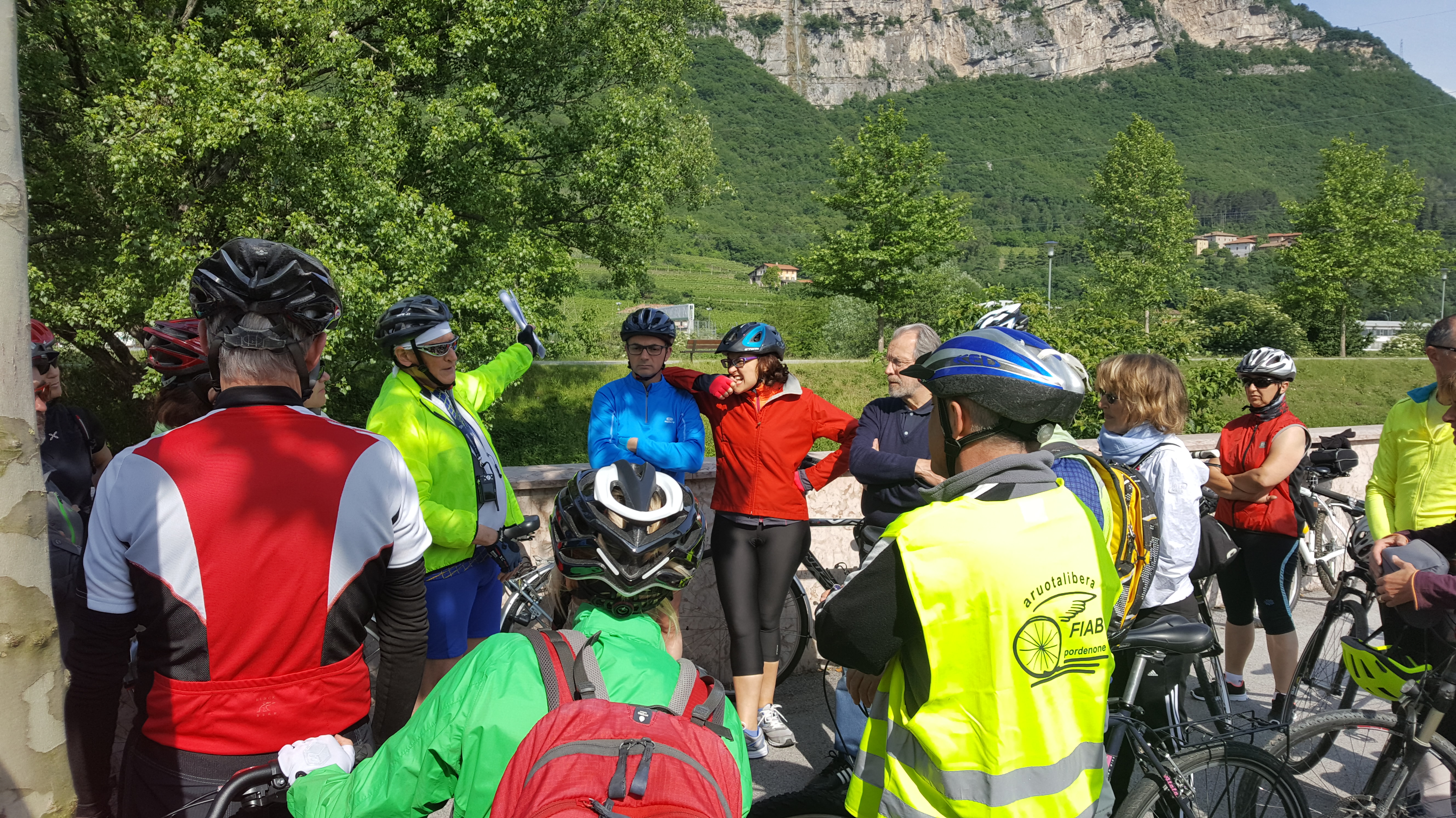 FIAB, Federazione “Italiana†Amici della Bicicletta. “Italiana” …  perché? Perché è presente in tutta Italia, dalle Alpi alle spiagge della Sicilia; ma italiana anche perché quando un’Associazione locale si sposta “fuori zonaâ€, trova la consorella ad accoglierla. E così è stato per gli Amici di Pordenone in visita a pedali in Trentino. Programma molto intenso: arrivati in 35 alle 09,00, scarico bici dal bus. Si visita Trento (09,40 – 11,40). Dalle 11,40 alle 13,40, visita guidata al Muse, indi si parte sulle ciclabili per Rovereto-Mori-Riva del Garda. Guide “indianeâ€, ovvero i fiabbini di Trento che hanno accompagnato gli ospiti: Francesco e il sottoscritto fino alle 13,00 – Fausto e il sottoscritto dalle 13,00. Fausto, dalle 17,00. Il sottoscritto dalle 18,30.
