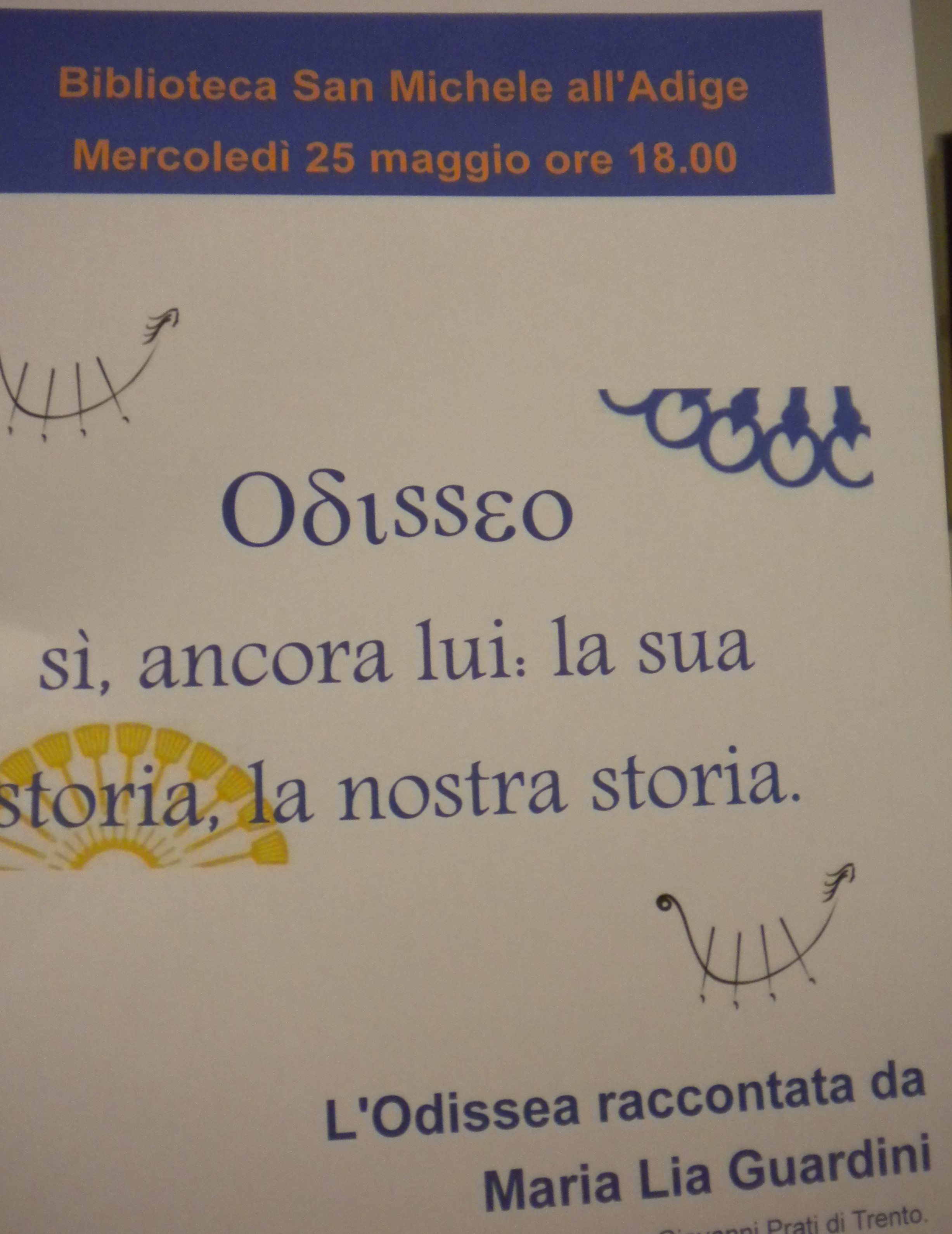 Cosa? Il mio resoconto è molto anzi troppo succinto? Vorrei vedere voi …. vorrei … che io oggi pomeriggio sarò alla Biblioteca di S. Michele all’Adige per ascoltare e recensire una conferenza della mia Prof Maria Lia Guardini su Odisseo che poi sarebbe Ulisse … vorrei vedere voi, vorrei! Arrivederci al post successivo!